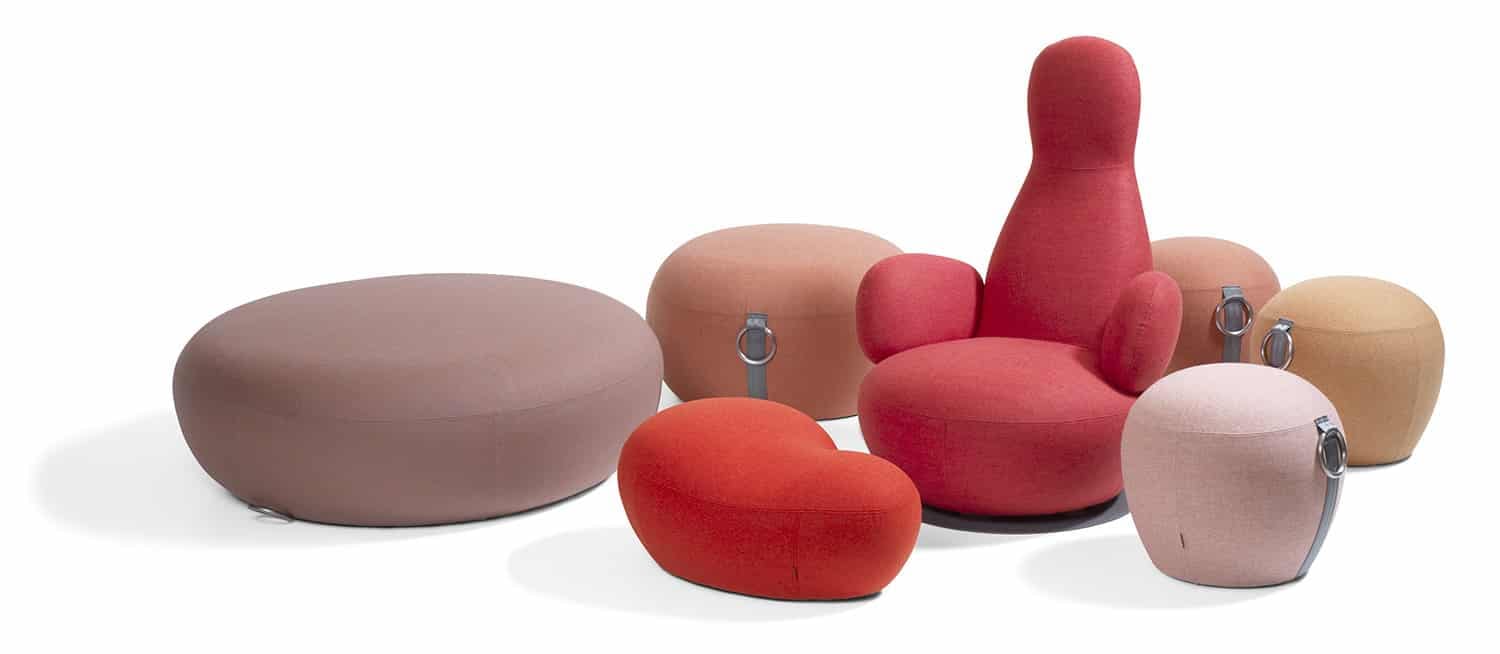 With his welcoming round shape, our Oppo armchair has become a popular figure – a friend who’s easy to furnish with. From the very beginning we planned a footstool, called Puppa; this became an expressive little precursor to Oppo, as if everything began there. Then it felt natural for us to carry on and fulfil demand, adding more footstools and pouffes to the family. Small, medium and large volumes, for one or more people, rounded and with sculpted forms that rest securely on the ground.