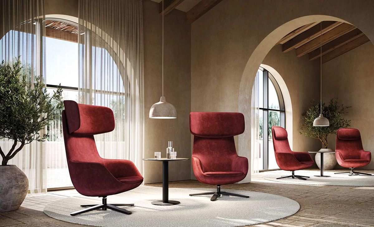 Meticulous craftsmanship is evident throughout—from the rigid polyurethane unibody structures to the sophisticated integrated mechanisms that remain elegantly concealed. Available in a range of upholstery options including premium fabrics, leather, and eco-leather, each piece can be customized to enhance executive offices, hotel receptions, lounge areas, and multifunctional spaces.