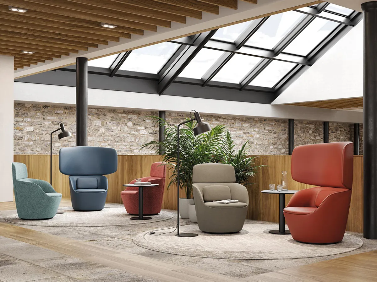 Meticulous craftsmanship is evident throughout—from the rigid polyurethane unibody structures to the sophisticated integrated mechanisms that remain elegantly concealed. Available in a range of upholstery options including premium fabrics, leather, and eco-leather, each piece can be customized to enhance executive offices, hotel receptions, lounge areas, and multifunctional spaces.