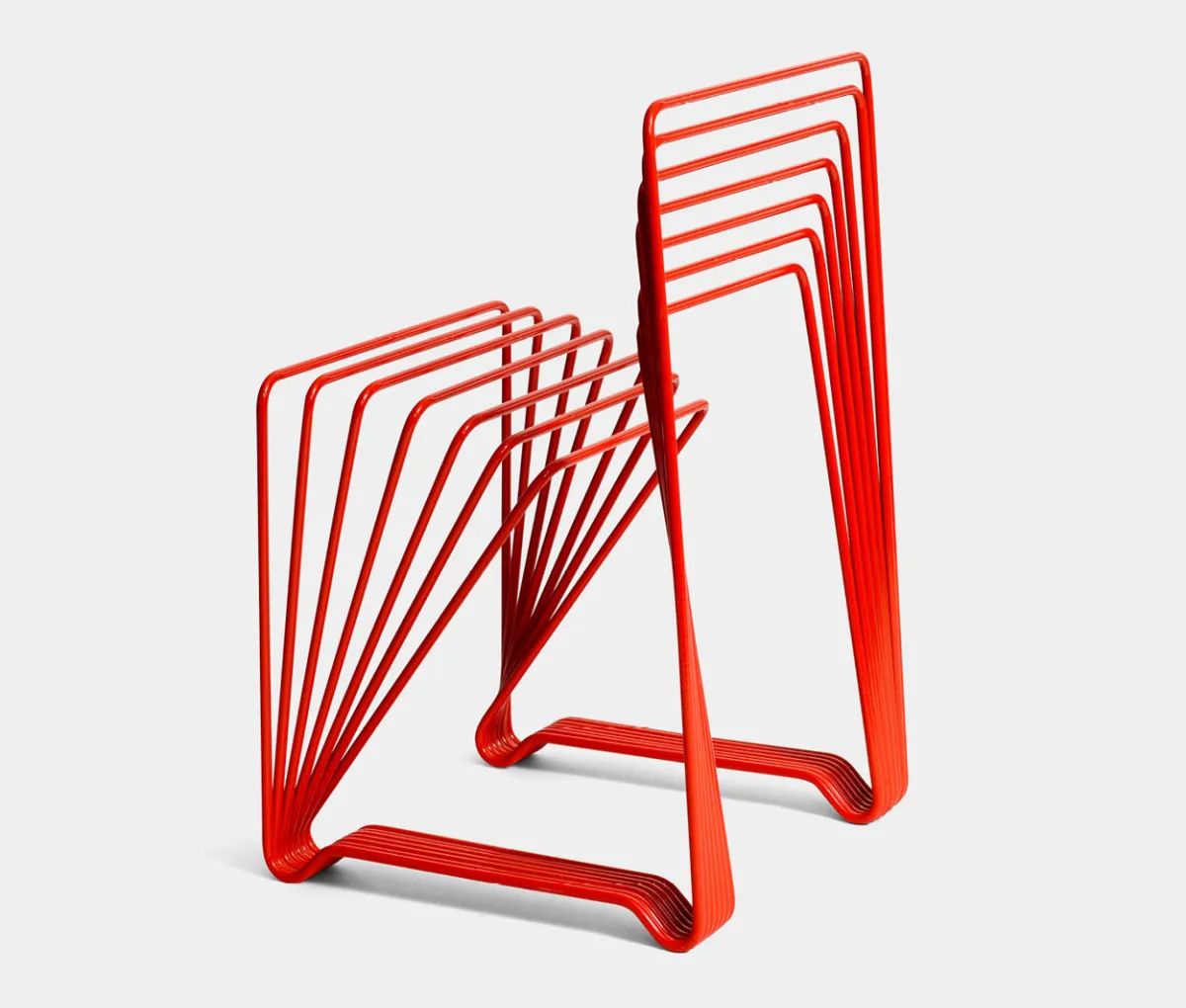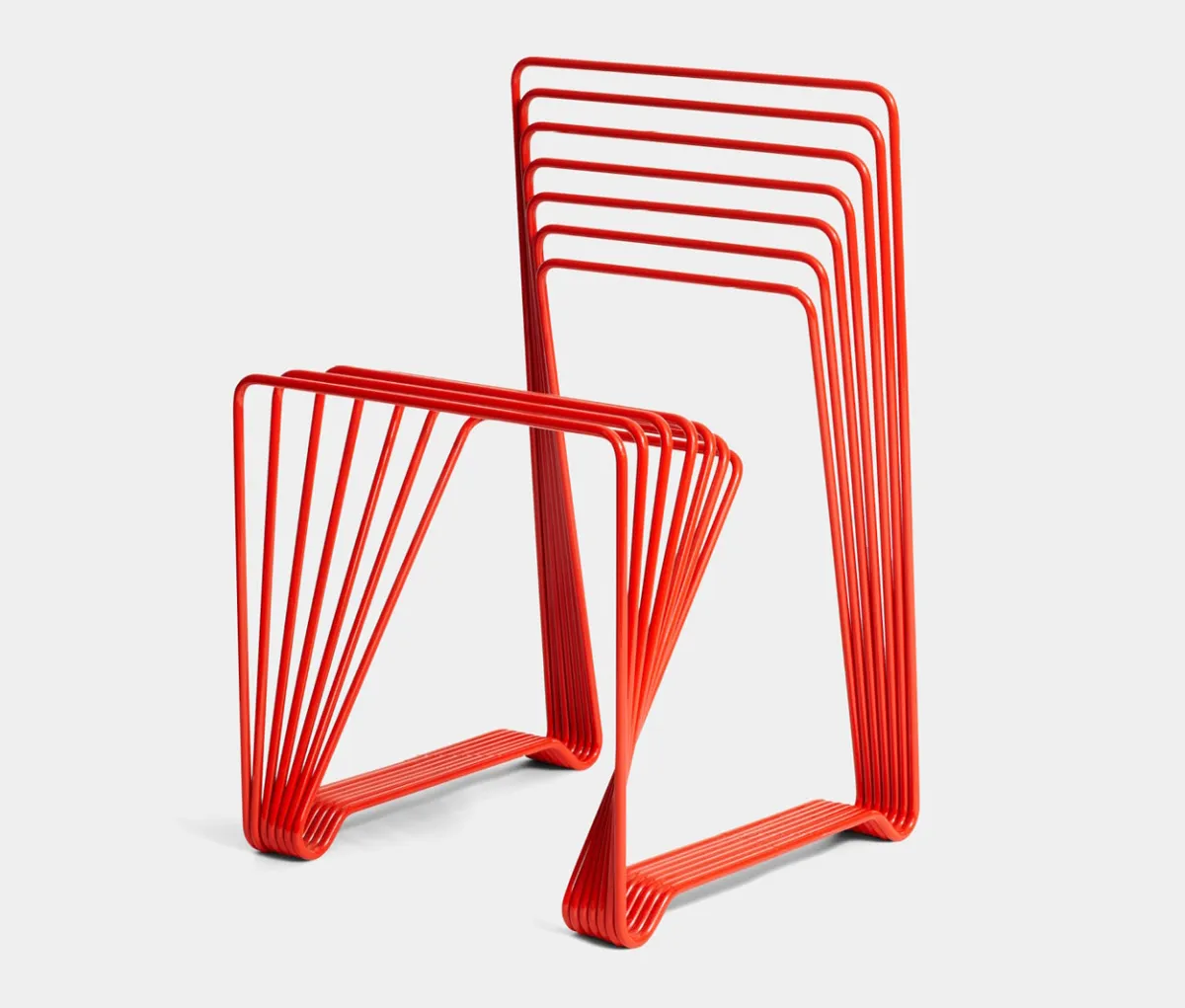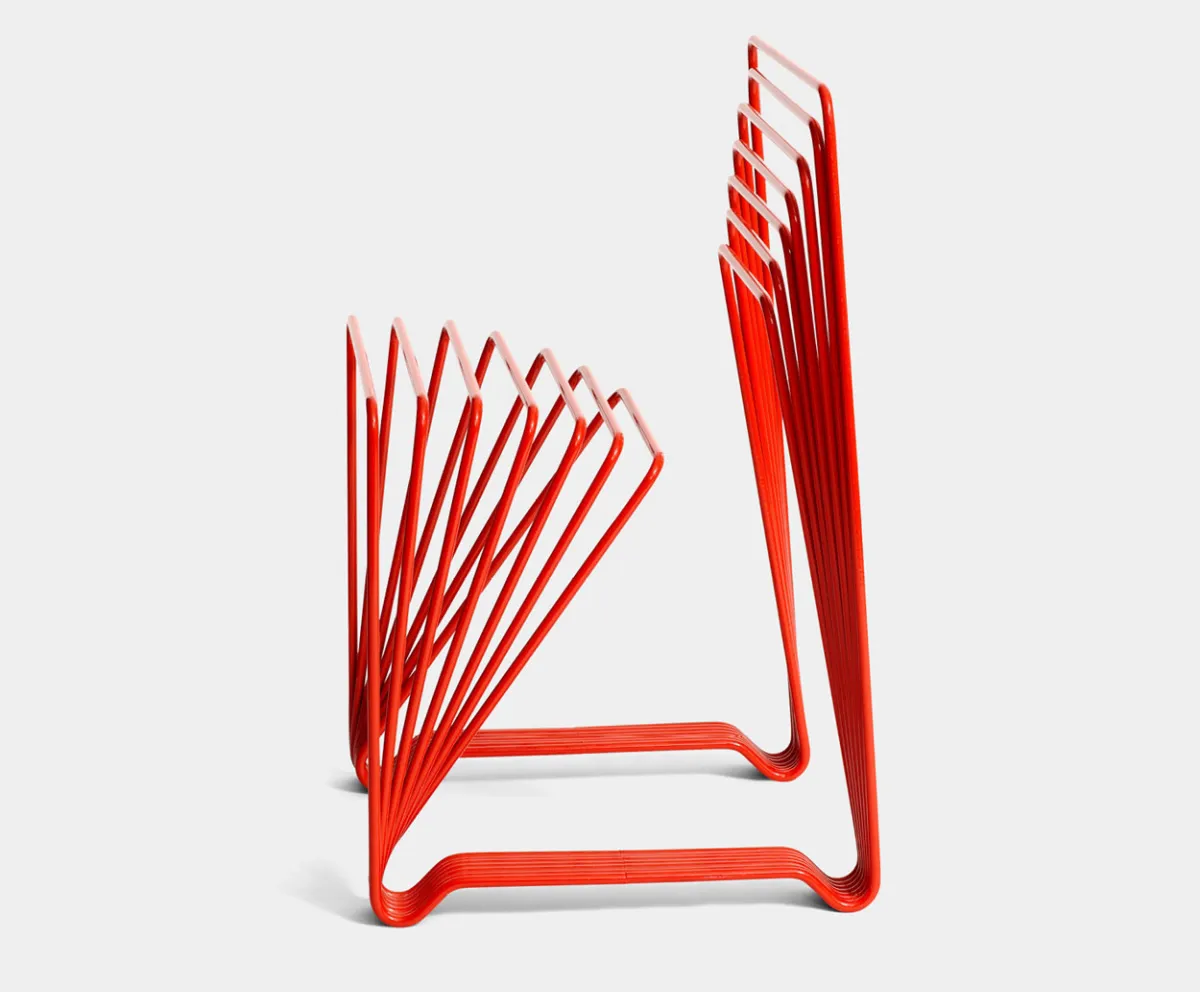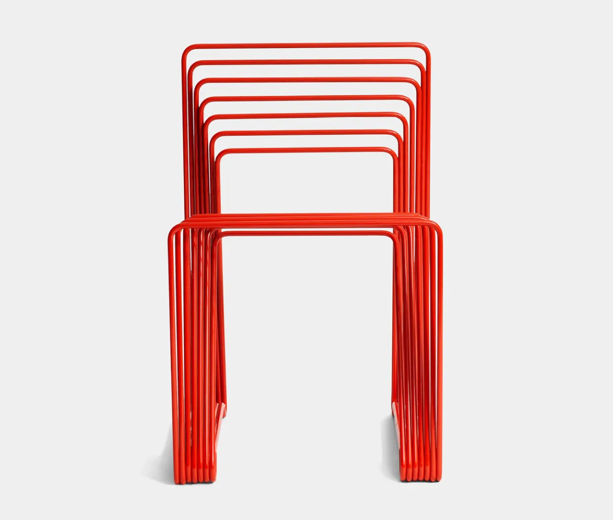 Chair made from seven lacquered steel sticks. The red chair was originally shown in the “Five playful chairs” exhibition in 2005. The red chair is made in a limited edition of ten chairs totally and has been acquired by the prestigious Nationalmusem in Stockholm and The Röhsska Museum of Design and Decorative Arts in Gothenburg.