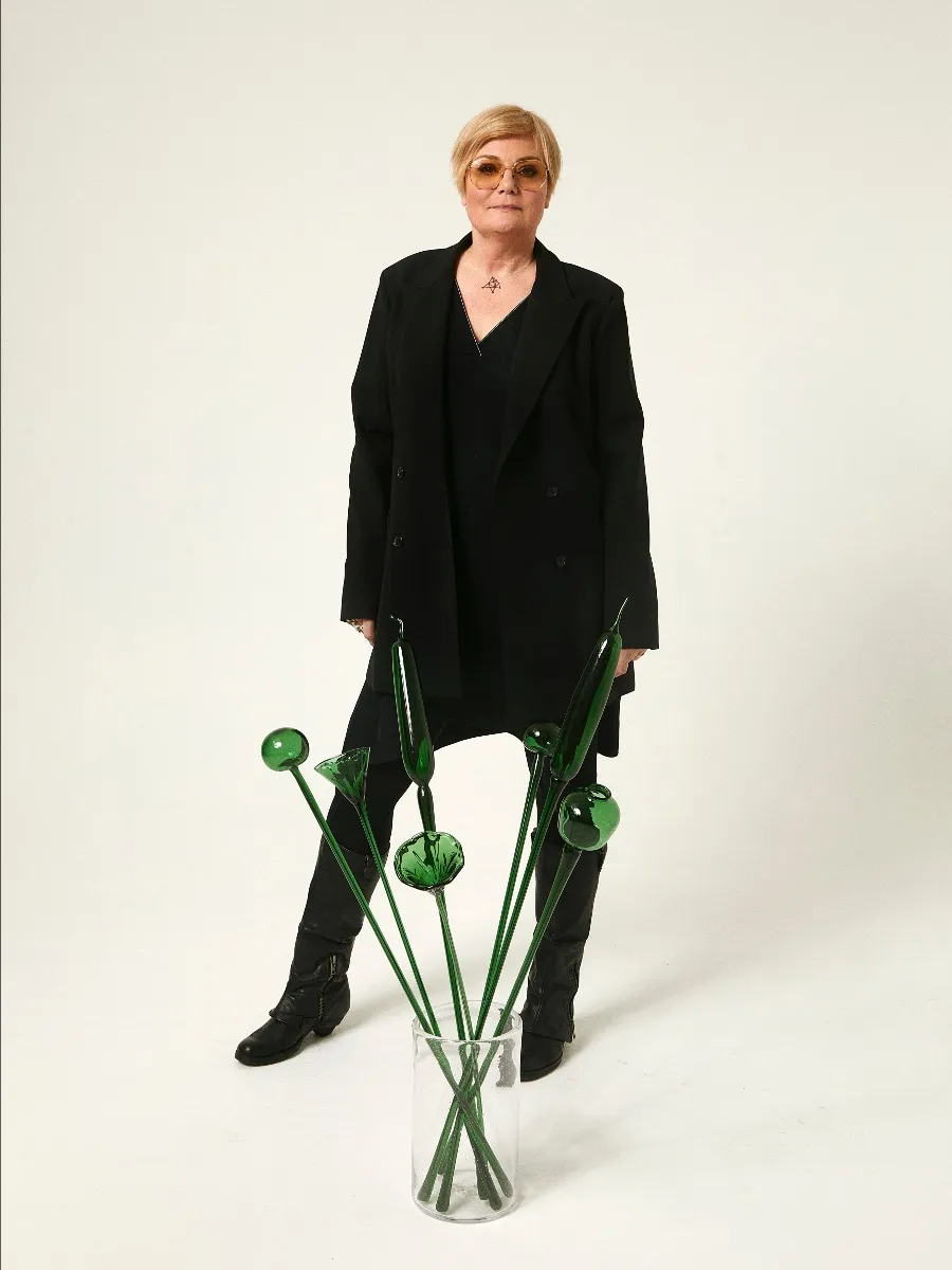 “My wish was to produce a functional utility object in opaque glass in clear colors. These colors are strongly anchored in my design identity. The idea was to make a vase where a braid would be applied. The braid would represent NK’s Together initiative where we are all intertwined. The braid and women’s hair, a symbol of recent events in Iran, have also inspired and touched me. Another source of inspiration was the beauty of my daughter’s waist-length braid, while knitted braids represent my background in textile fashion. Realizing my vision of glass braids was a great challenge. In this experimental and sketch-like phase, it became a pretzel that ultimately symbolized my idea.”