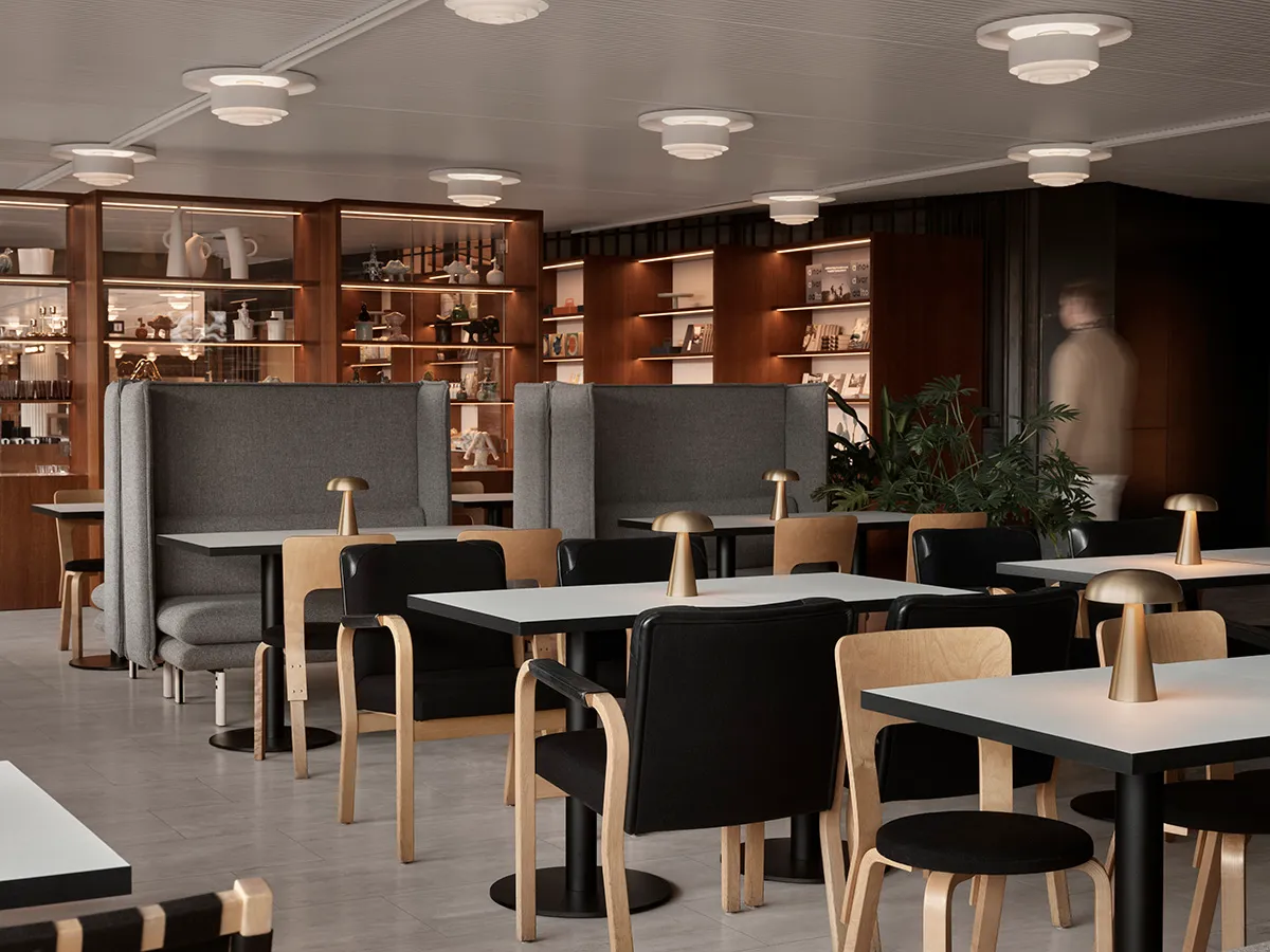 A design shop specializing in Finnish design opens next to the café, offering products from small Finnish design brands, unique Finlandia Collection products, timeless classics, products from Arabia art department’s ceramic artists, contemporary design utility items, and of course Aalto products to take home.