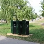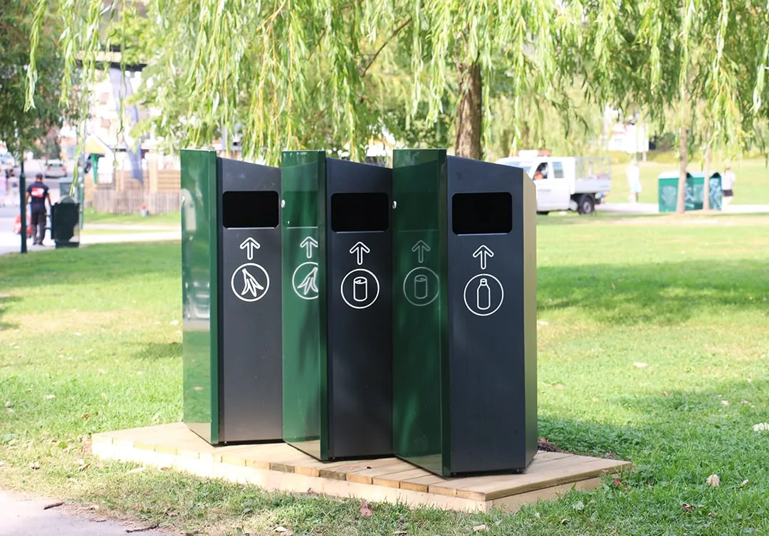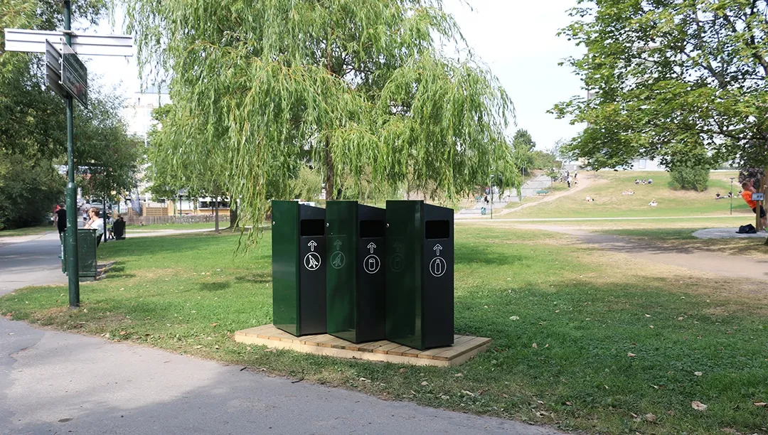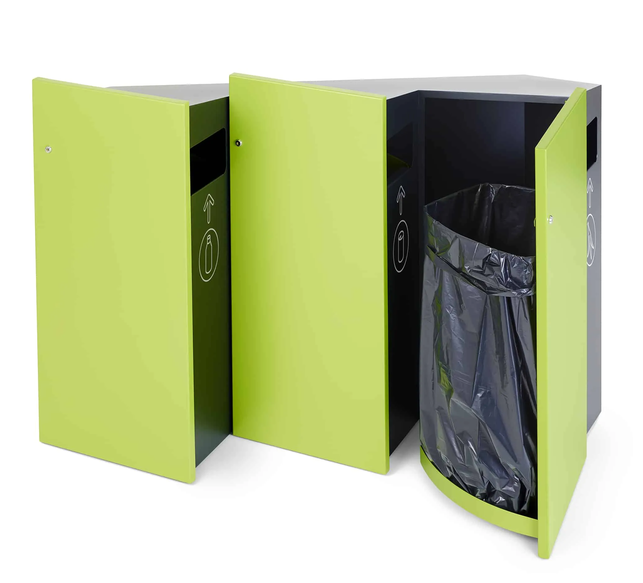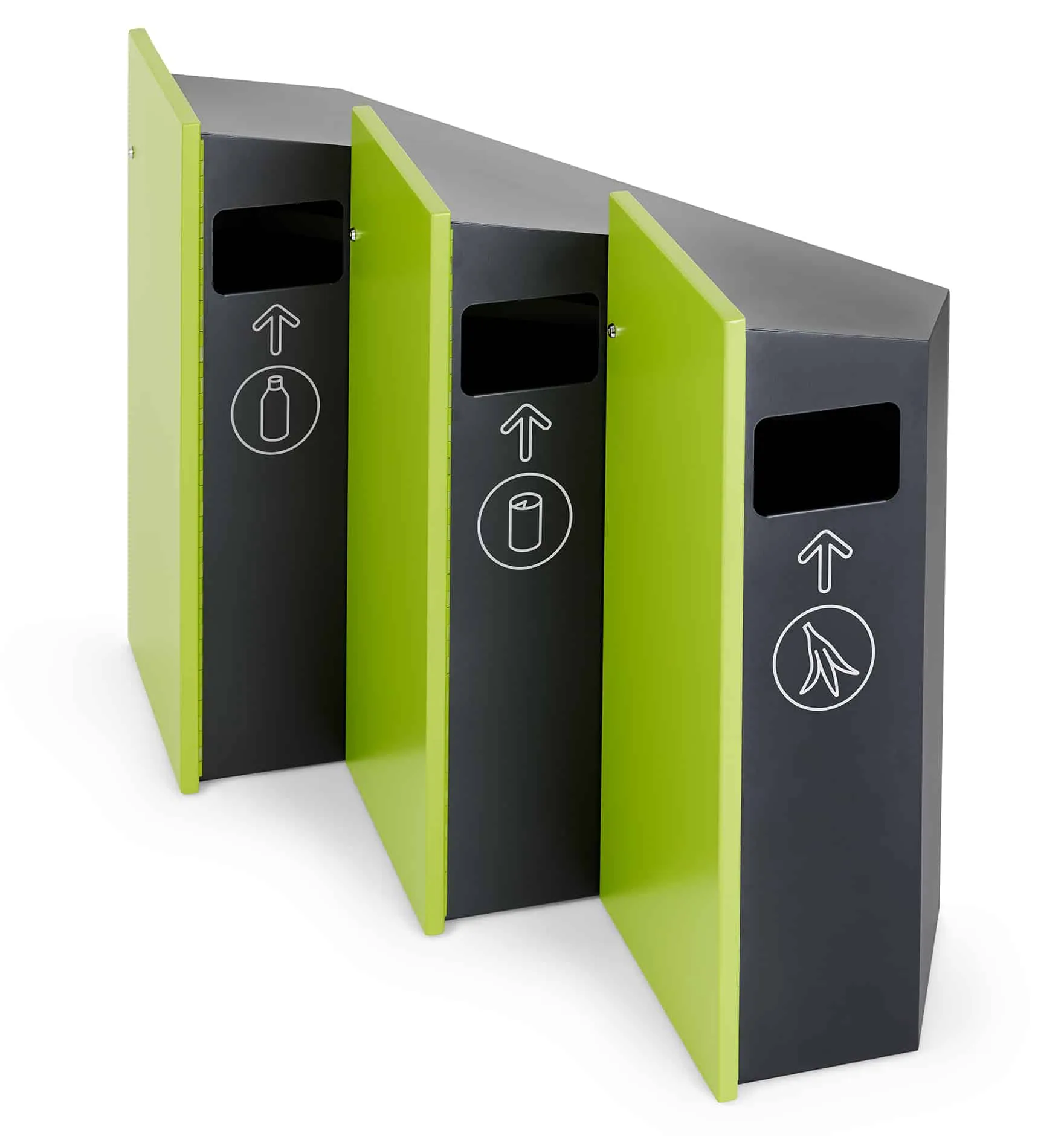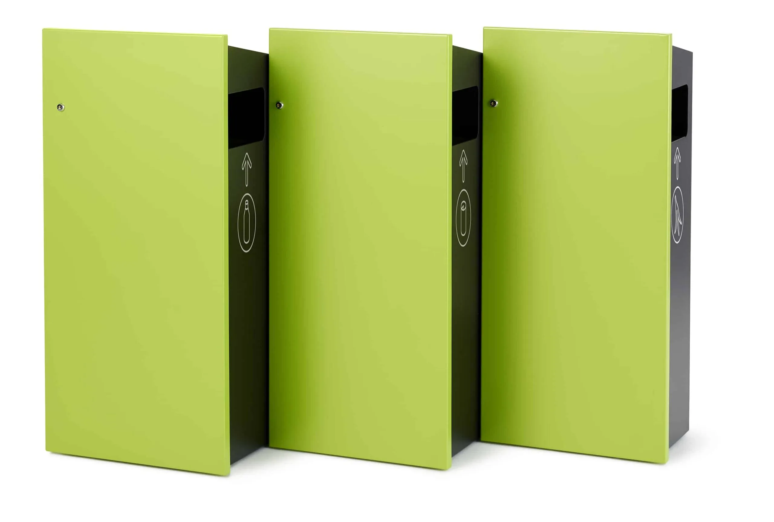 Repeat is a spacious litterbin with the capacity to sort waste items for recycling. Made for both indoor and outdoor use, the opening for litter is placed discreetly in the side rather than in the front, enabling Repeat to always show its cleanest side. The front panel is simple and straightforward, painted in a single colour to create a sleek look. Repeat is made single sided with three or two inlets and a sloping roof. Repeat is also made doublesided with one double bin with a total of two inlets with a total of two bags and doors on both sides. That model is made with a flat roof.