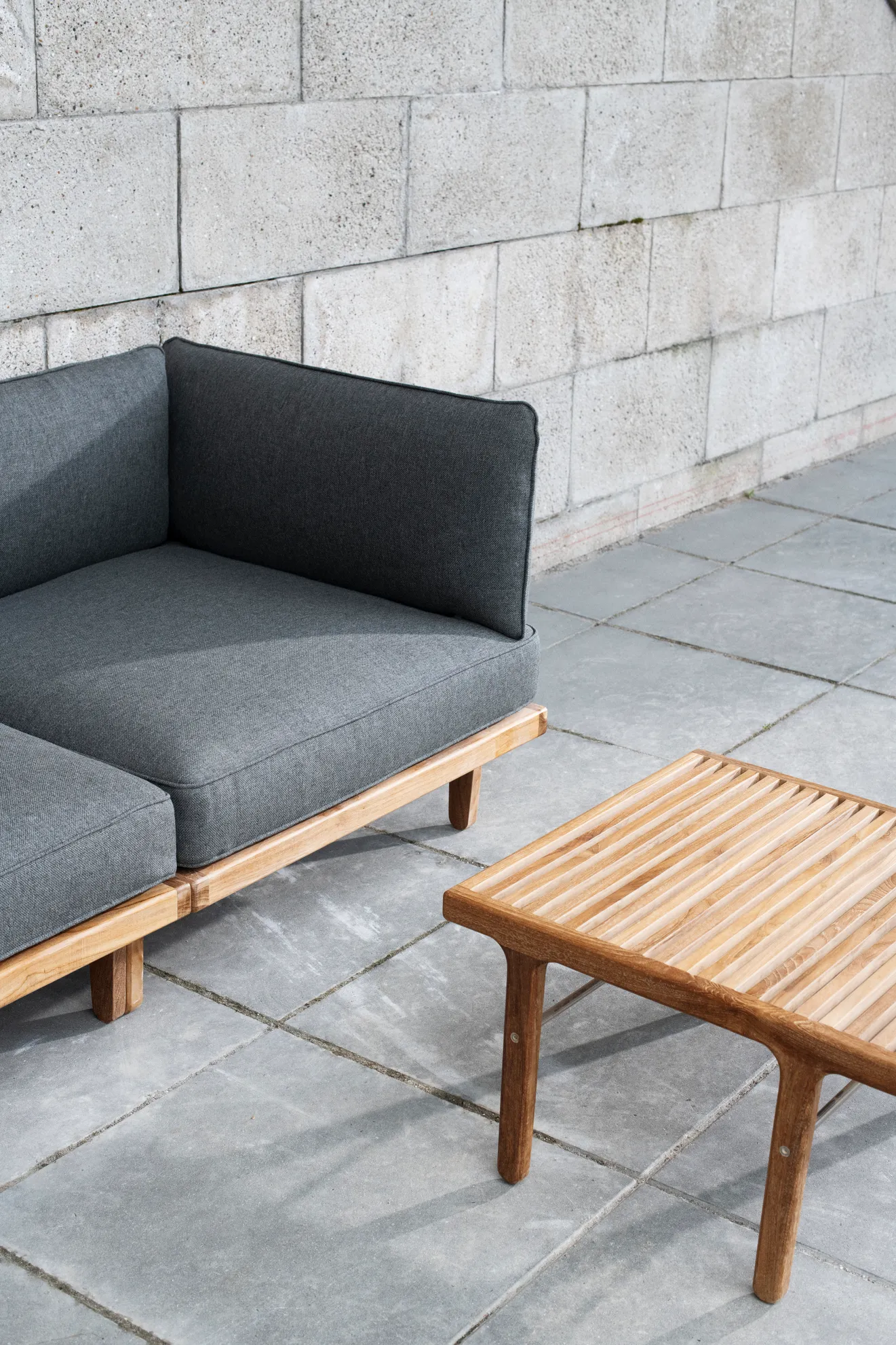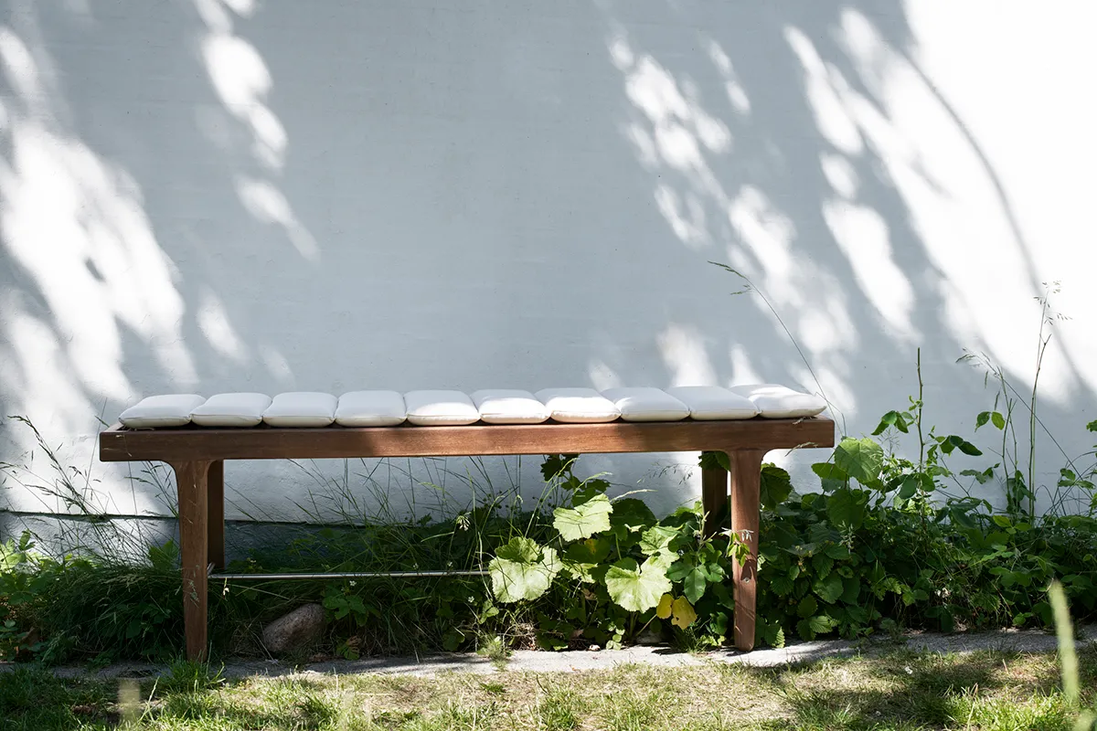 Morten Anker's Rib Outdoor Collection for Sibast Furniture featuring sleek wooden slats and contemporary Danish design for outdoor spaces.