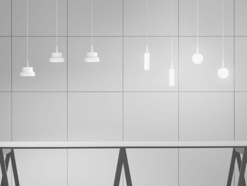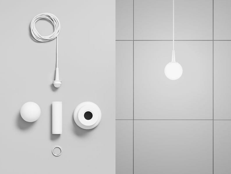 Tub: Opal akryl, frostad utsida. Metallringar vit RAL9016.
