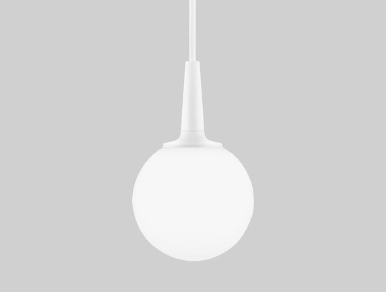Glob: Opalt glas, vit metallring RAL9016.
