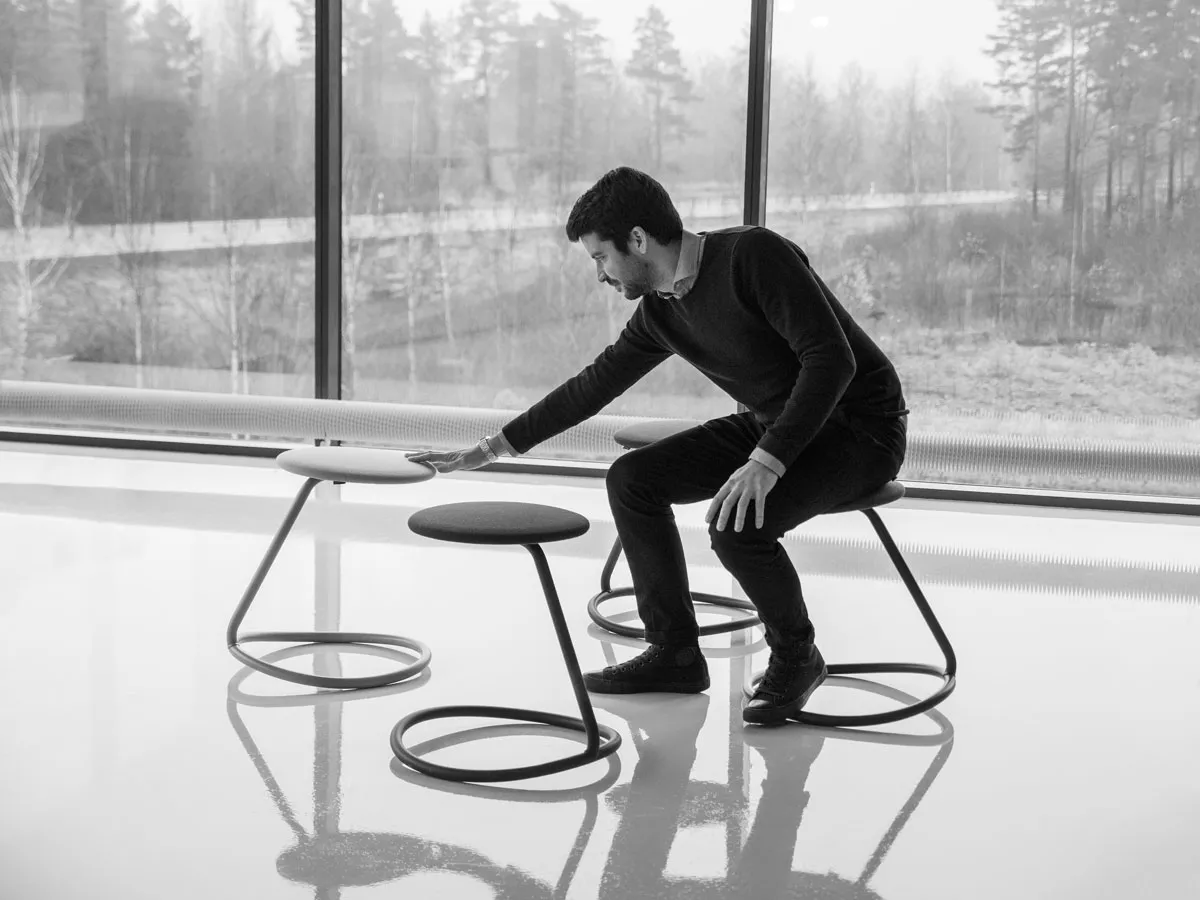 Alexander had a clear idea for his product from the start. He noticed how sedentary we have all become, especially in our offices. His aim was to create a playful stool inspiring the body to move, a way of staying active.