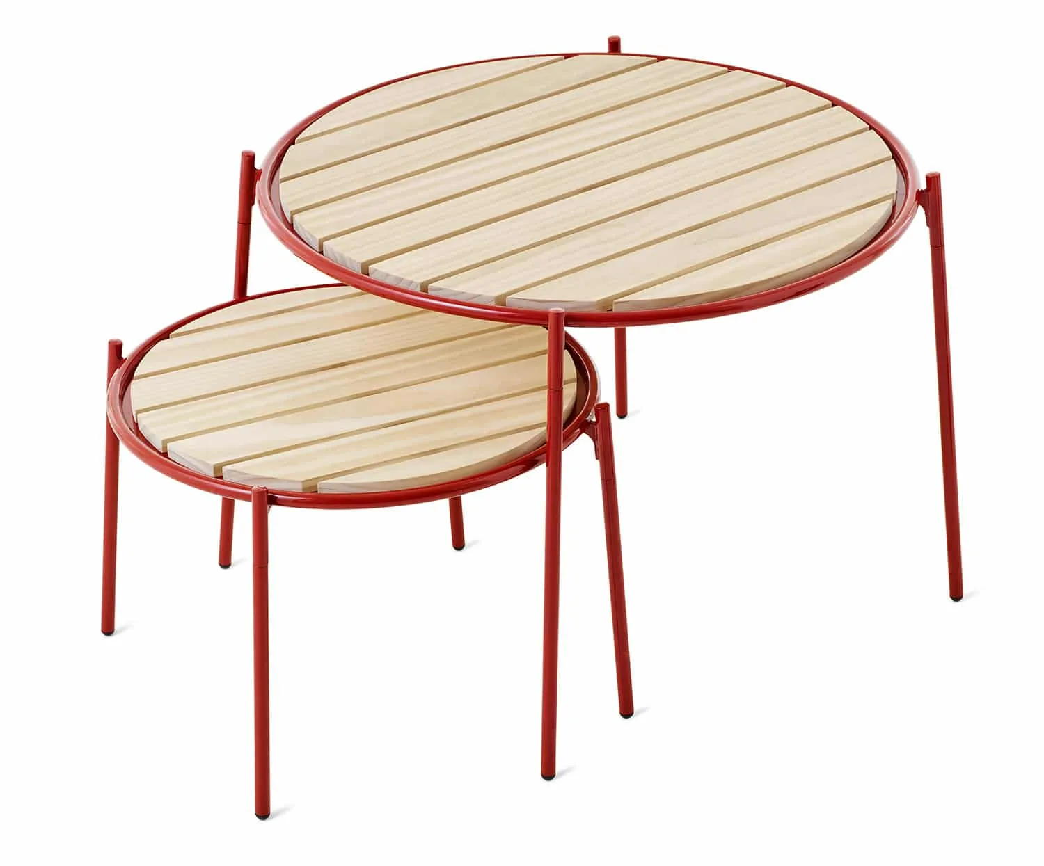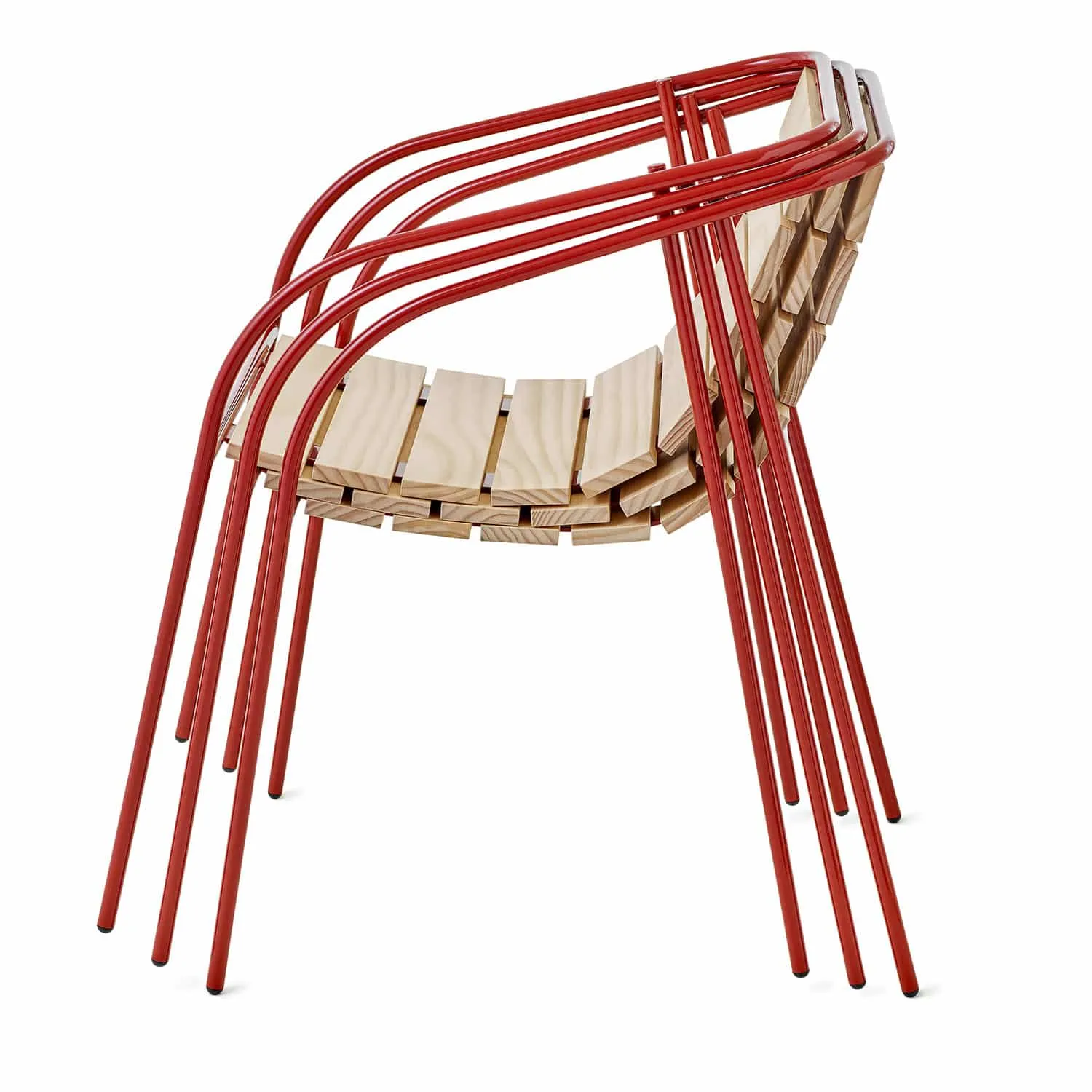 Rocky is now complemented by the addition of a new, versatile design that provides seating or a side table. Its surface is also crafted from Accoya®, while the base is made from powder-coated red steel. Rocky is a stackable design crafted with a seat and backrest.The seat’s wood grain and rich natural texture provide a neat contrast to the sleek metal frame. All products  in the Rocky series are freestanding and suitable for both indoor and outdoor use.