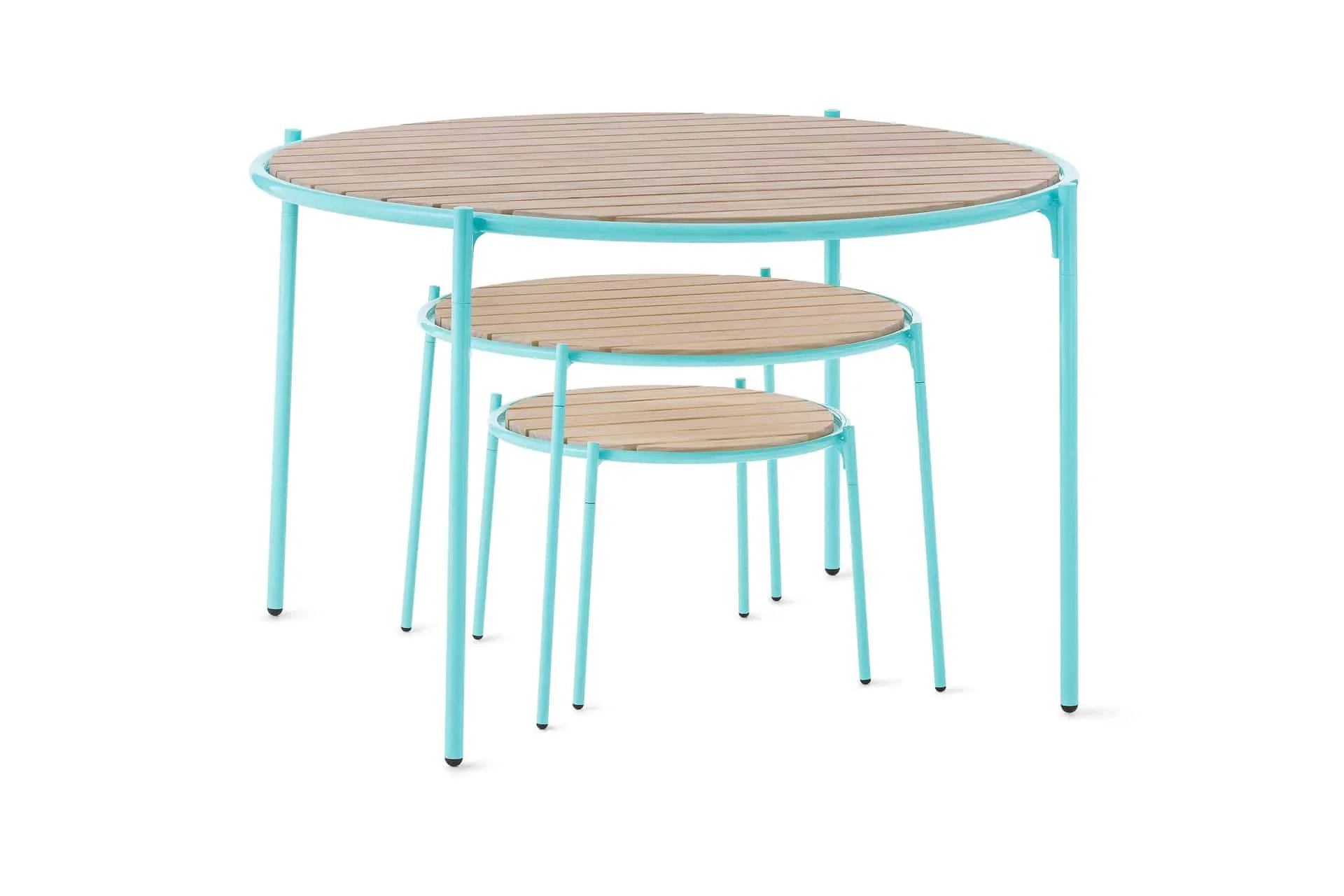 The designs in the Rocky series are characterised by crisp, powdercoated steel frames and smooth Accoya® surfaces. Comprised of a rocking chair, an armchair and two low tables, the series is now complemented by a new round table with space for four seats. The table’s wood grain and rich natural texture provides a neat contrast to the sleek metal frame. The slated surface allows water to run off easily, enabling the tabletop to dry quickly after a rain shower. The Rocky table is a great choice for café terraces and outdoor meeting areas, and any indoor area where contemporary design is appreciated.