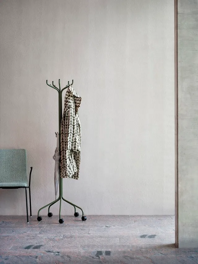 At a first glance, Roll looks like a traditional coat hanger, but there’s more to this character than meets the eye. There’s nothing ordinary about it. Roll is a coat hanger on wheels, shaped like a tree with its stem, crown, and roots. It’s inspired by the kingly giants of the forest, but also by a king on an entirely different stage. Louise Hederström, a designer based in Skåne, loves the king of rock ‘n’ roll, Elvis Presley. Roll doesn’t move like Elvis, but it can easily be moved from one space to another. Thanks to its 5 wheels, Roll can be used in flexible meeting rooms, lounge spaces, and every space in between where people meet. The wheel construction also makes cleaning easy. Roll is balancing on a thin branch between functionality and decor. Its’ austere, yet playful, giving character to every space. Roll with it.