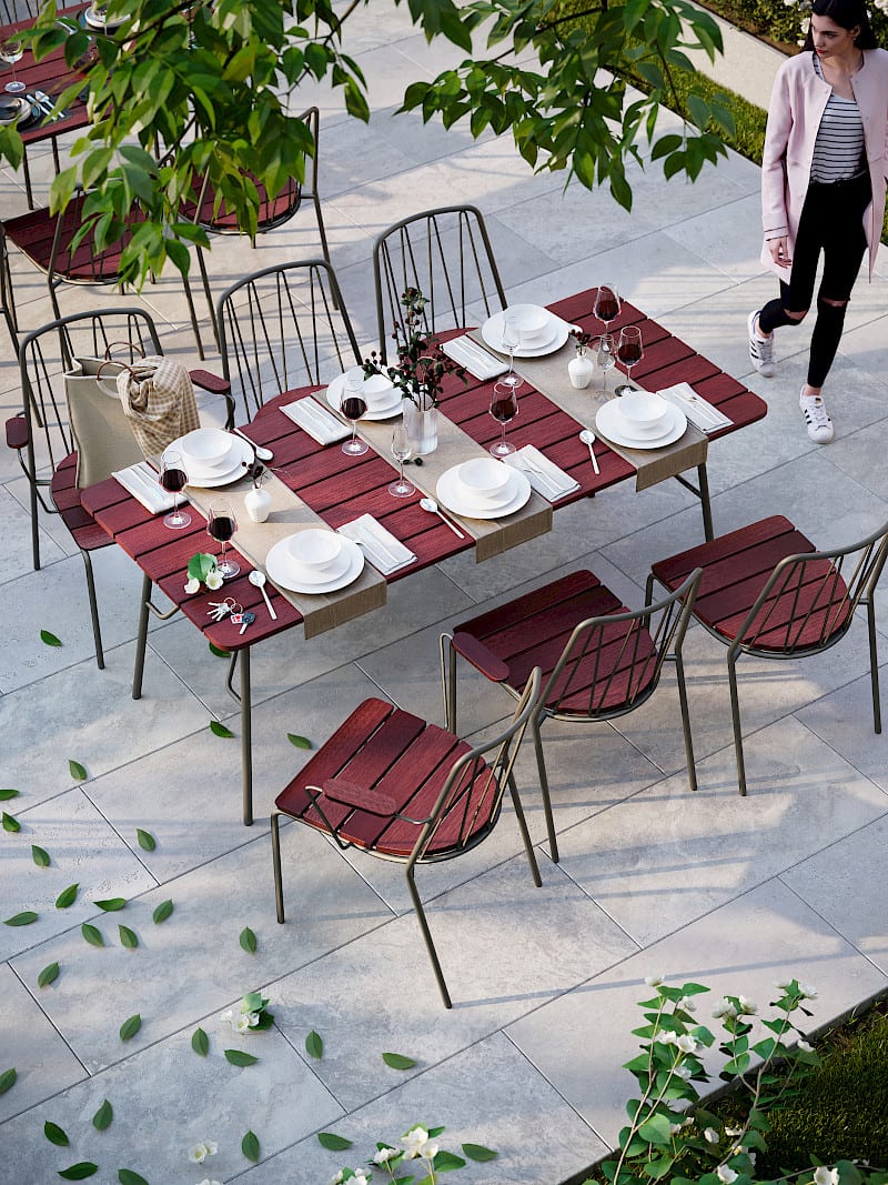 With their elegant steel frames, the products in our new Rousseau furniture group create a thought-provoking encounters between classic and modern shapes. The furniture group is designed to suit a wide variety ofenvironments, from outdoor cafes and restaurants to city courtyards and urban gardens.
