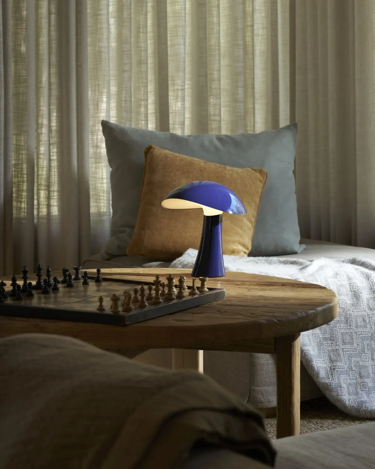 The Rumee Portable Lamp has a sculptural design that evokes elements from the natural world. ​