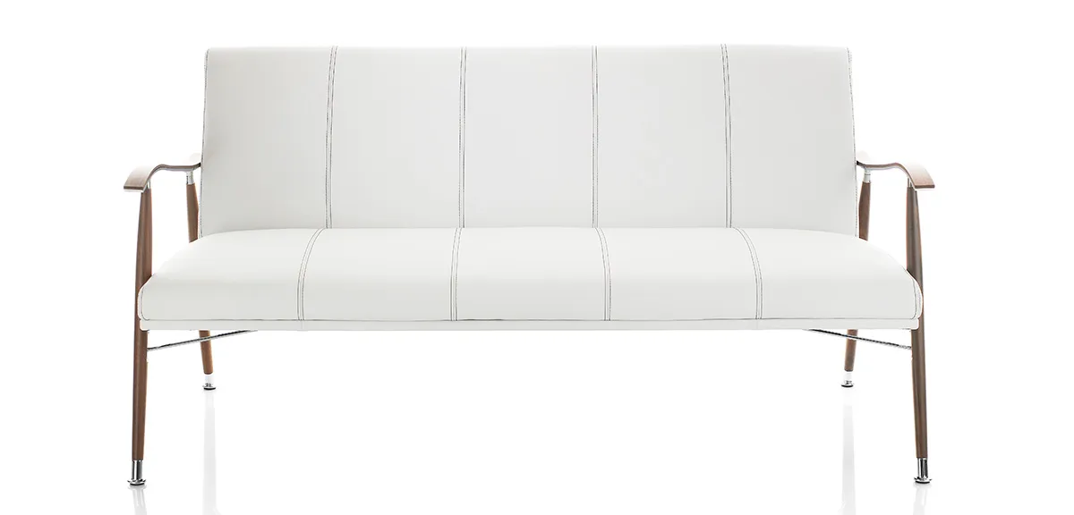 Sahara Wood is available as an easy chair and a 2-seater sofa. The wood legs and the arms, which constitute the key to the construction, are available in walnut and in black or white stained ash. Bold vertical saddle-stitching on the seat and back, creates a strong visual expression.