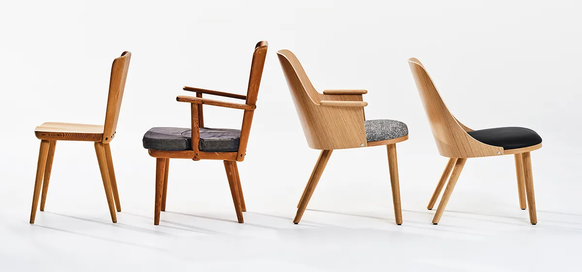 Sander Conference (2023) easy chair rewinds the history of Karl Andersson & Söner back to the 1950s, when the vogue was for log-cabin furniture, Svensk Fur, inspired by German Bierstube styling – robust, wooden furnishings made of pine. With its gracefully curved veneer back and gentle lines Sander is a modern variant of the log-cabin armchair that combines good sitting comfort with its own distinct design style.