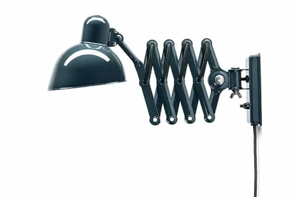 With its wall mount, swivelling shade and flexible scissor arm, this lamp is not only suited for use as a classic reading light but also serves the need for good lighting elsewhere in the home, for example in the kitchen, hallway and other places with limited table or floor space. The lamp is available in a range of colours: black, matt black, ivory, white, ruby red and the new colours mint green and dark blue.
