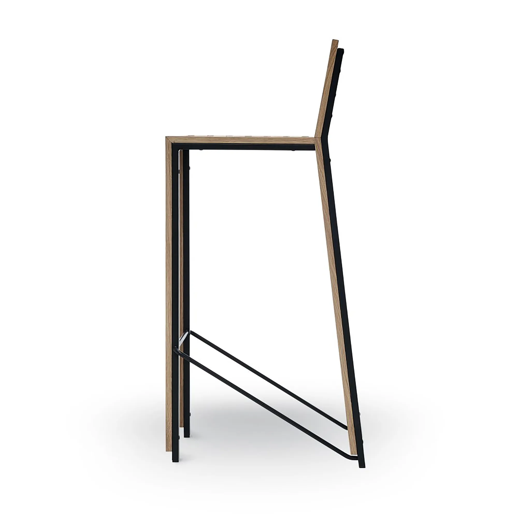 The metal frame serves as an exoskeleton of the wooden chair, providing it strength and allowing it to be so slim. The result is a robust stackable side chair and bar stool where you get tactile advantages of seating on the wood, combined with the strength of the steel tube.