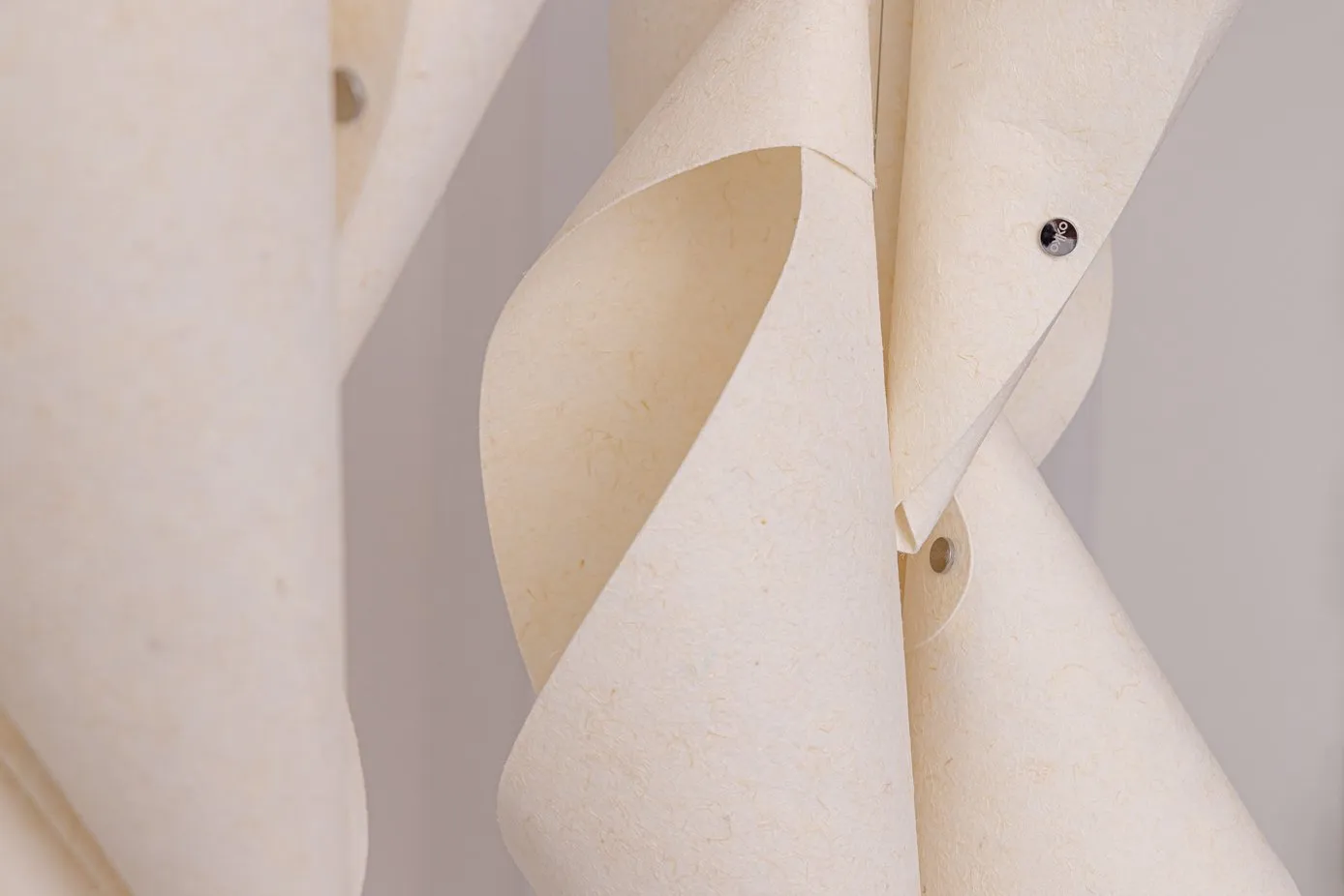 Shell is an acoustic pendant, a sculptural piece of sound absorbing art, constructed of several hemp sheets that contains amazing sound absorbing and aesthetic qualities. The sculptural shells shows the beauty of the natural hemp fiber.