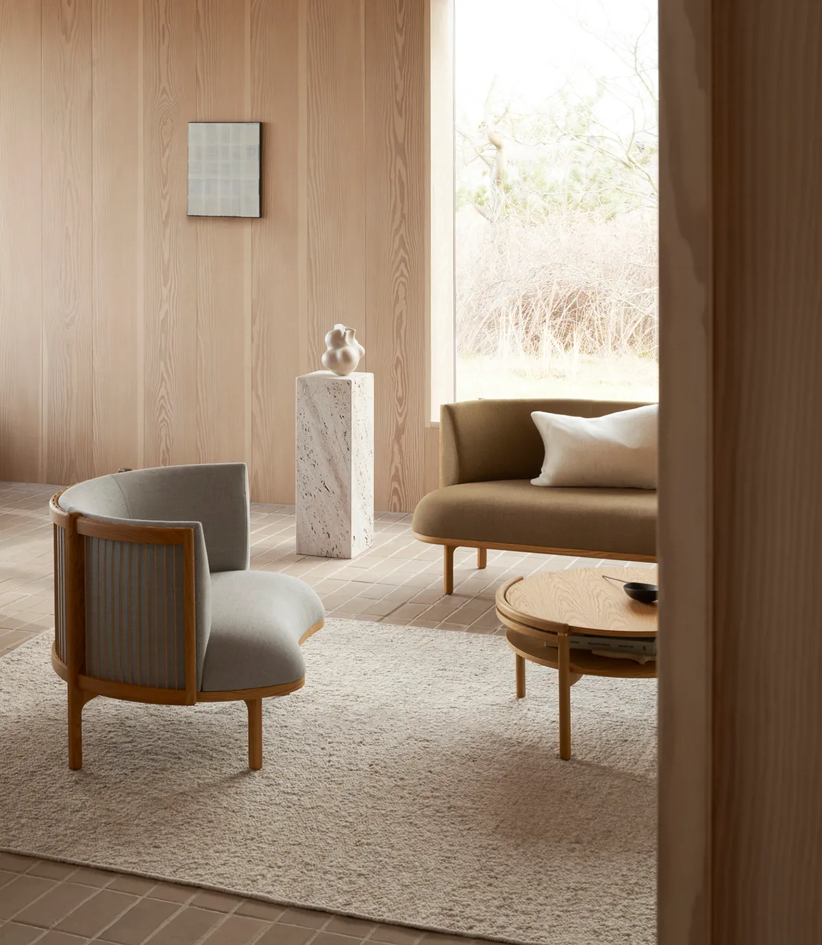 Now, the Sideways Series includes a lounge chair and a coffee table that stand out for their classic materials shaped into modern, rounded designs, making them suitable for both private and public use.