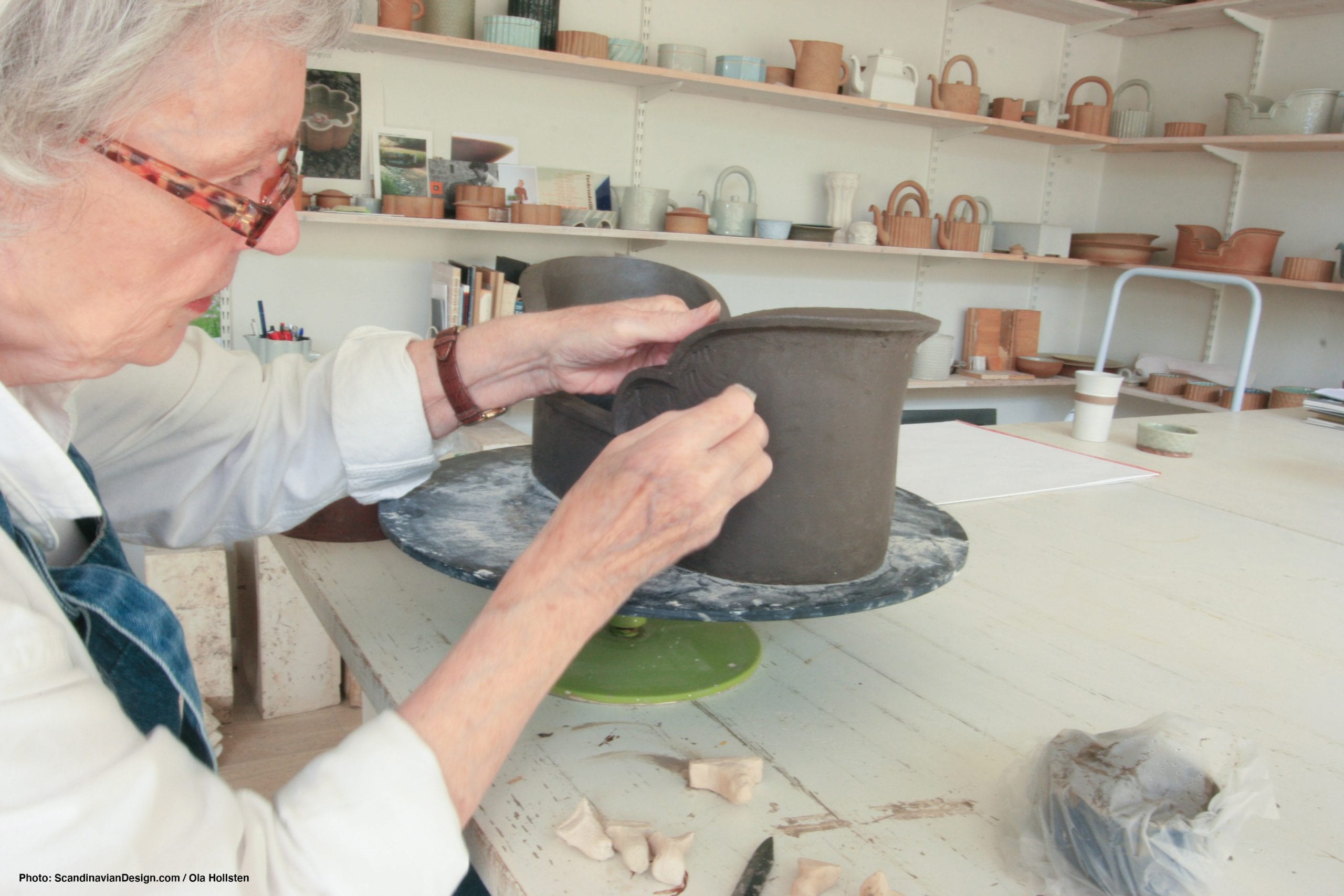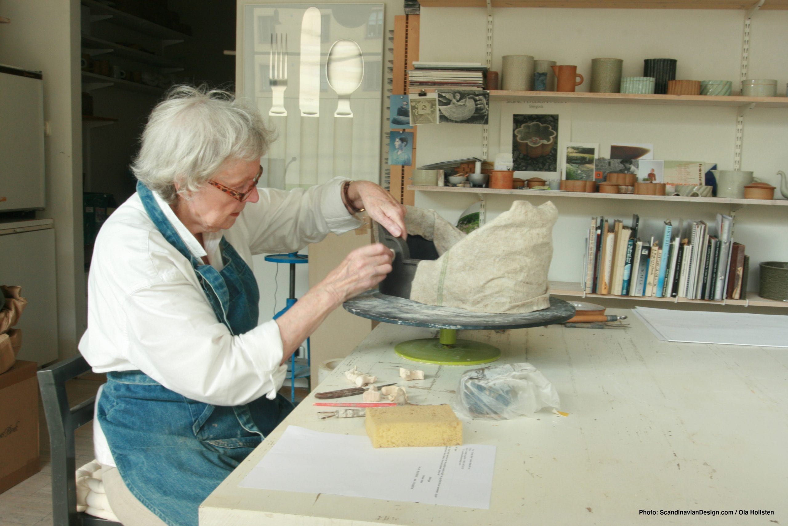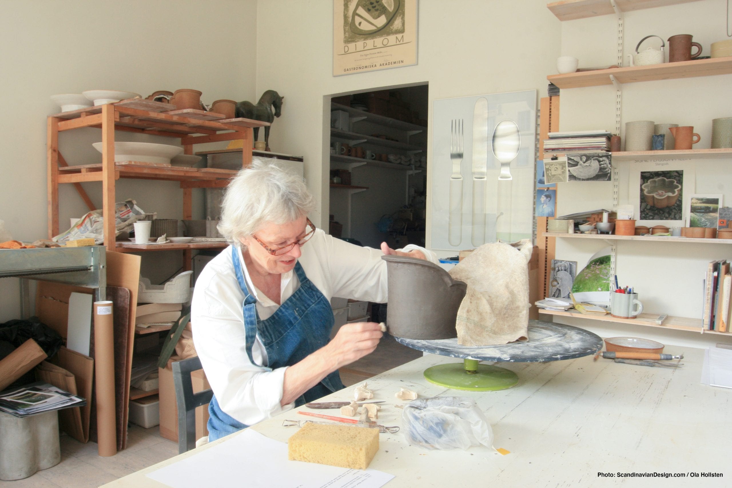 Signe Persson-Melin in her workshop – Swedish ceramist and designer, 1925–2022, photographed by ScandinavianDesign.com