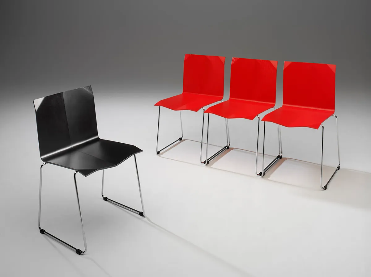 This collection demonstrates Gústafsson’s ability to translate traditional craft techniques into contemporary furniture manufacturing, creating pieces that capture the geometric precision and elegant simplicity of origami through industrial materials and processes.