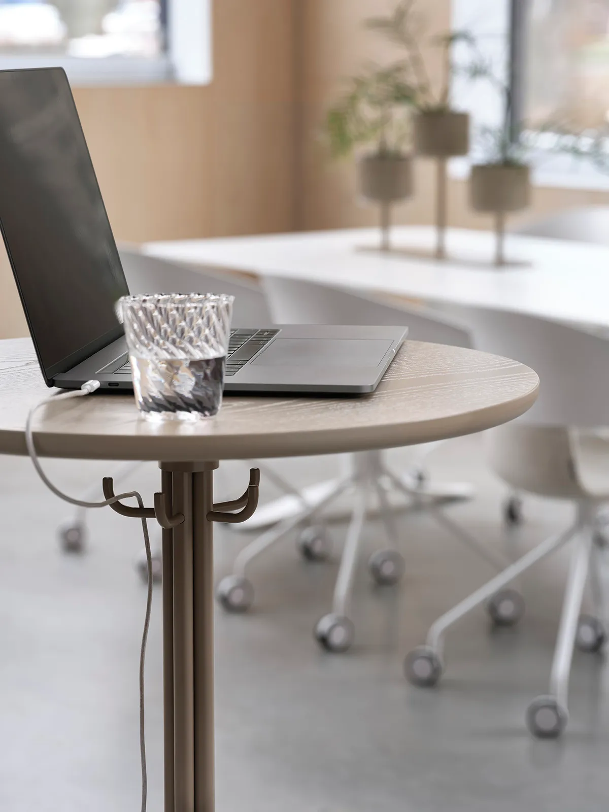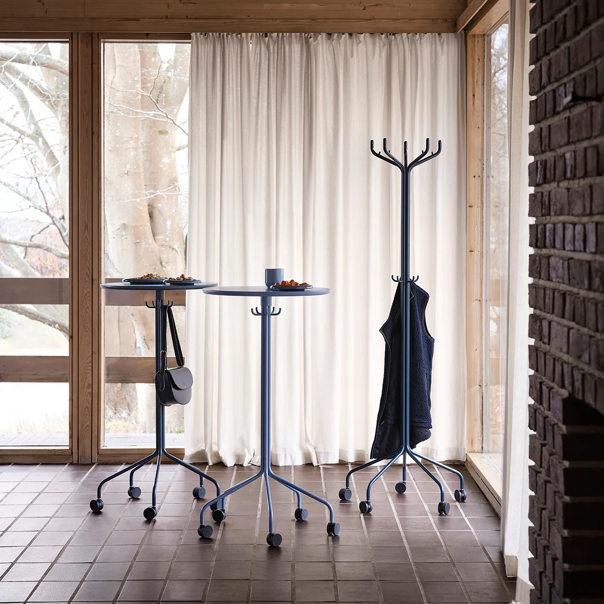 The Roll standing table is designed by Louise Hederström and embodies both flexibility and functionality. Its tree-like shape and base with five casters make it stable and easy to move. Roll also features hooks for clothes and cables, while the solid tabletop offers the perfect spot for your laptop, mouse, and coffee.