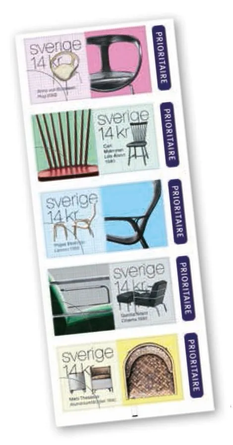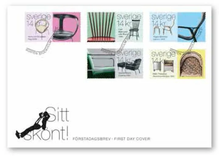 Motiven är svensk stoldesign. Stolarna som visas är Hug (Anna von Schewen), Lilla Åland (Carl Malmsten), lamino (Yngve Ekström), Cinema (Gunilla allard) och Aluminiumfåtöljen (Mats Theselius).