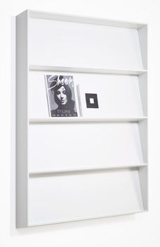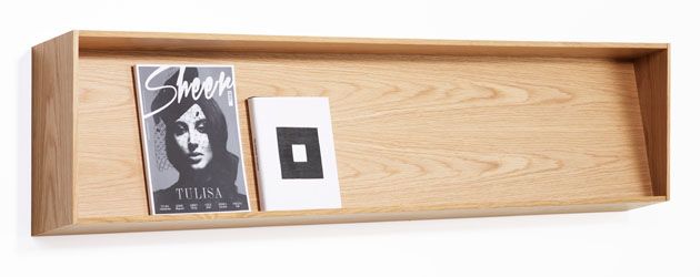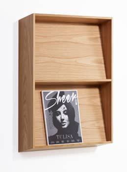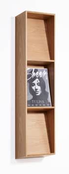 Slope’s shelves lean backwards, which enable you to display both thin and thick materials of different heights without them folding over or falling forwards.