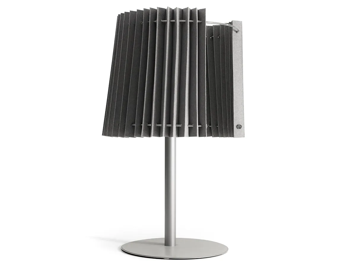 Smalltalk is built on a metal frame, a higher table, a rubber mat and a screen of a sound absorbing material. The fact that the screen is folded, or pleated if you like, breaks the sound waves very efficiently and thus creates a kind of a refuge where one can go away for conversation and creativity.