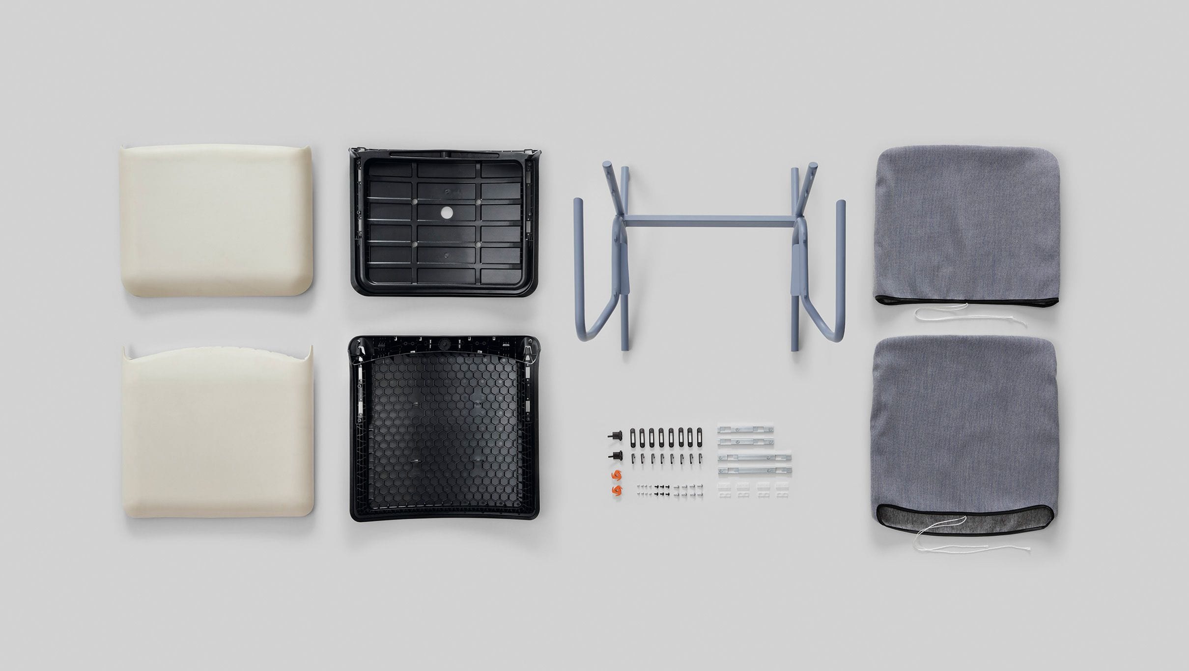 The chair’s snap-together system allows for quick, tool-free assembly and disassembly, simplifying the user experience while reducing material use and waste.