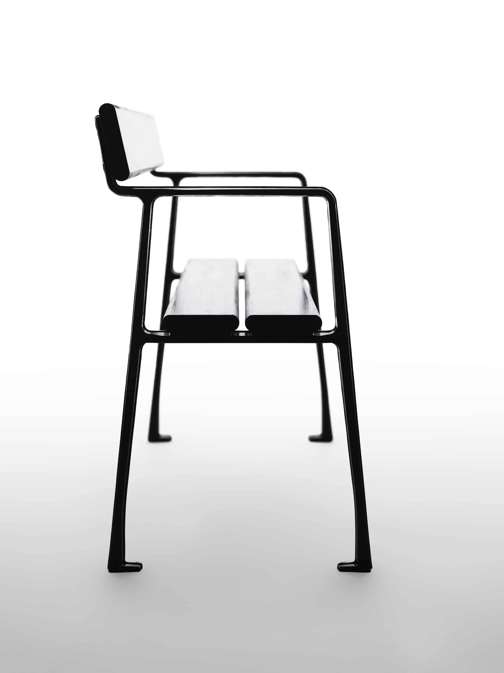 Joel said, – We should have a petite seating furniture that fits the brief sitting. I began to think of places like the bus stop, in the store or in port the rise, something that does not take as much space and offer a moment of rest, small and flexible enough to be placed where it is needed. After a period of work I got stuck for a little sketch with cast end of the slender dimensions along with three boards, one to the back and two to the seat, the seating furniture with small dimensions that I think feels new and interesting. Casting technology have given us the opportunity to refine details such as armrests, ground anchoring and positioning of screws mm.
