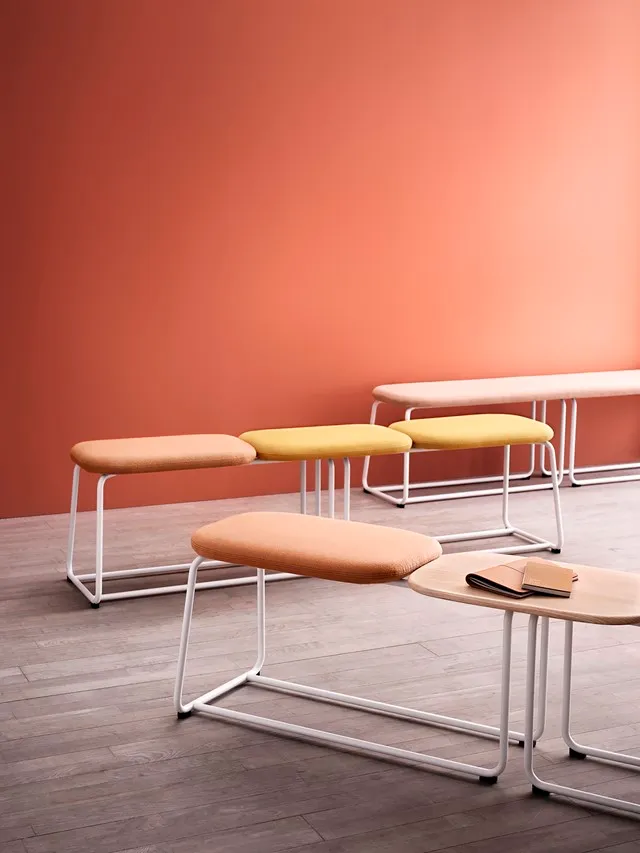 The Soft Top family started with four chairs but now has some new companions. With two new bar stools and three new benches – where a tabletop joins together one of the benches – Soft Top makes taking a break a little easier. And a little more comfortable.