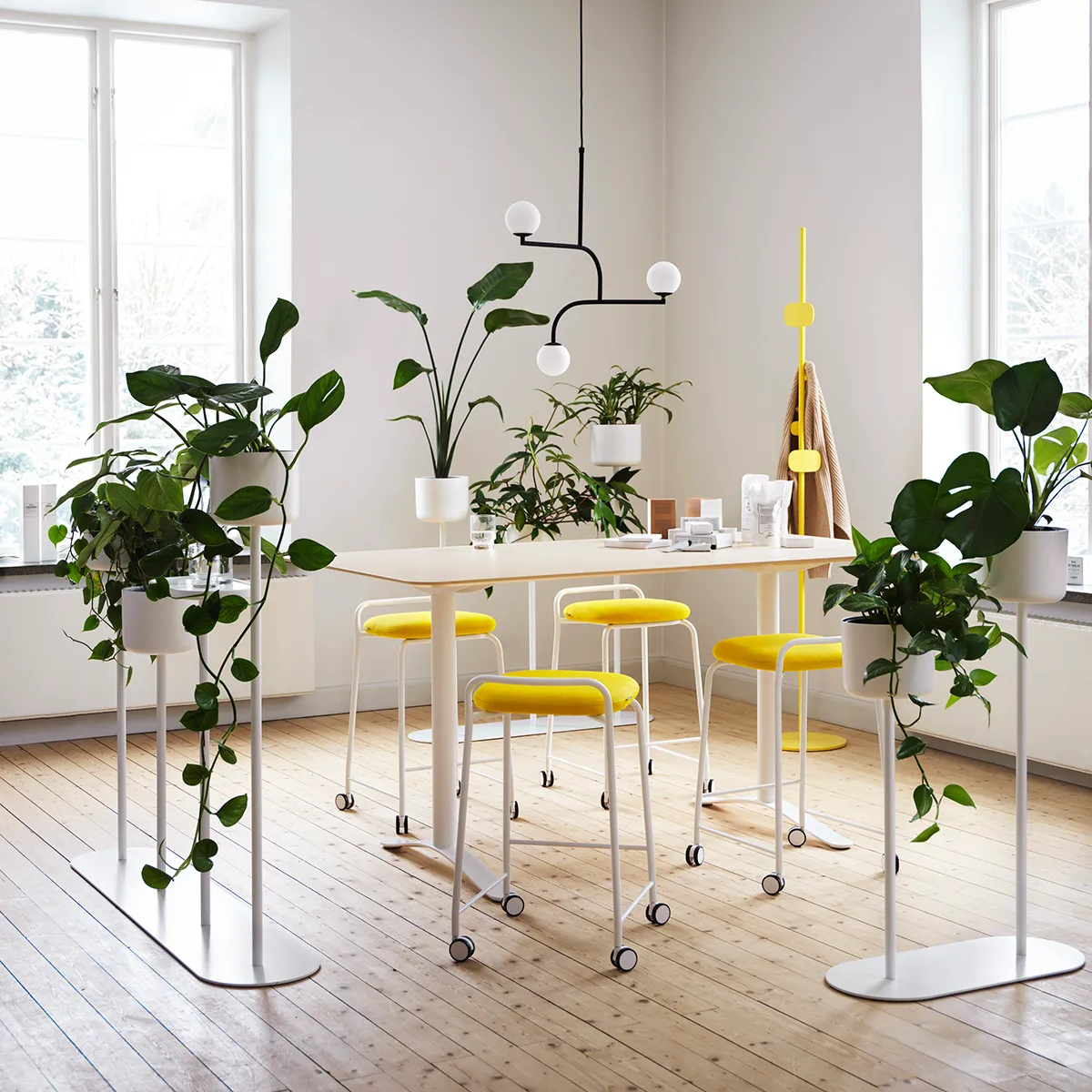 Stand, sit, roll forward and roll away. When Soft Top gets a set of wheels, creative meetings can gather pace. With its simple, unique design, Soft Top fits into most settings. With its flexible construction, it has a place anywhere that activity and movement are mixed with concentration and calm. In your home office in front of the screen. With colleagues at work. In the workshop where new ideas are waiting to emerge.