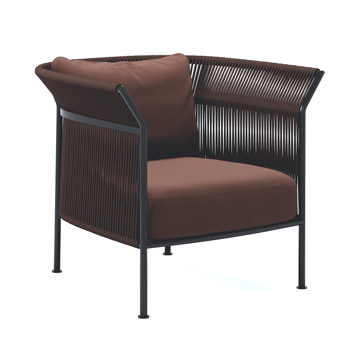 Solo is available as a single easy chair or as a 3-seater, offering flexibility for both residential and hospitality contexts where lightweight, weather-tolerant seating is needed.