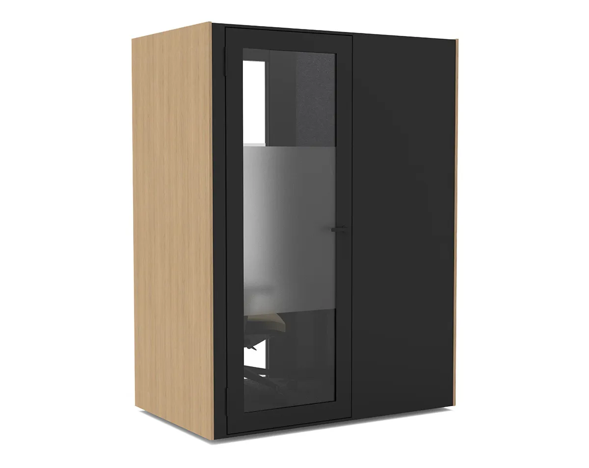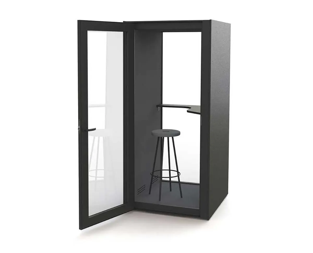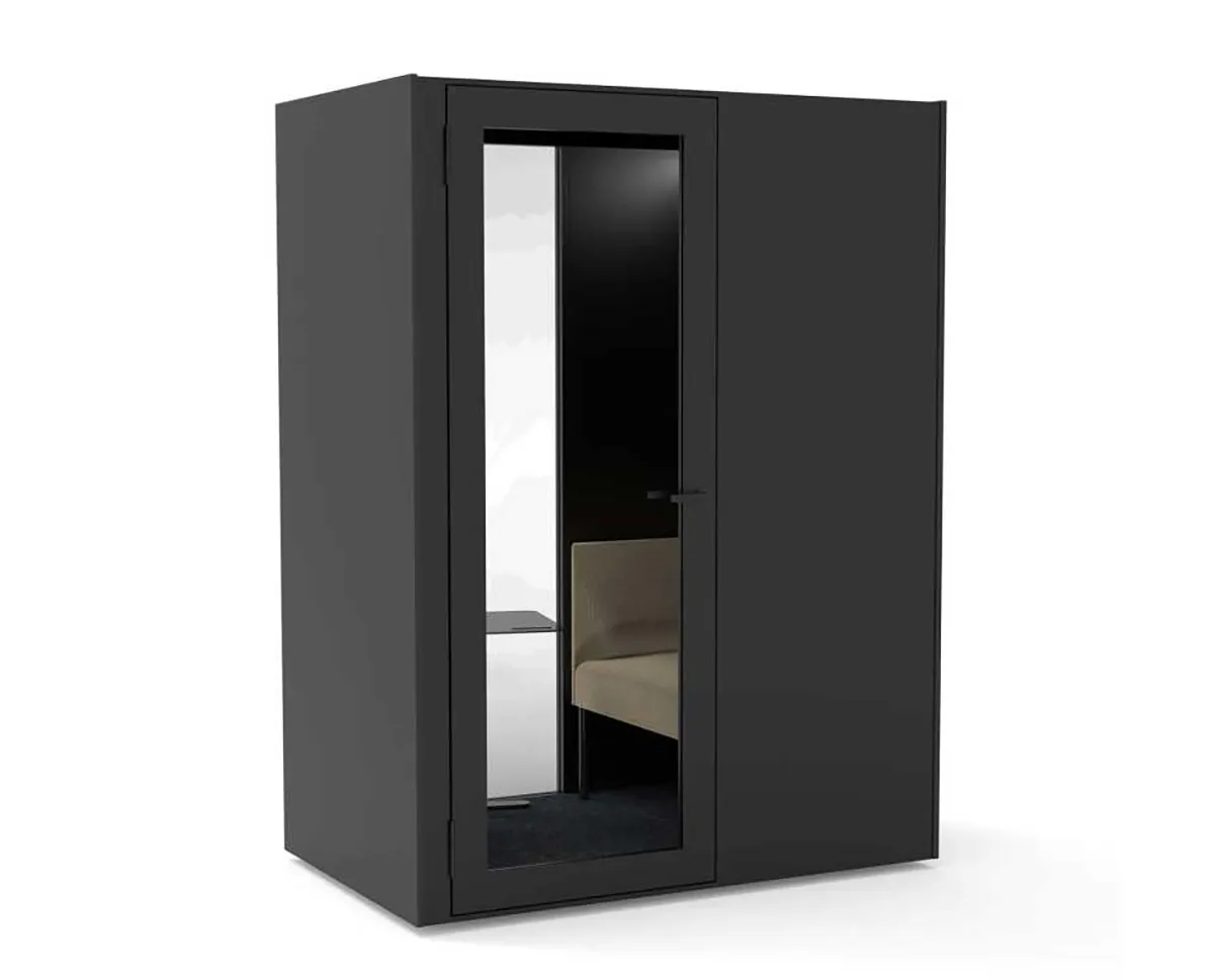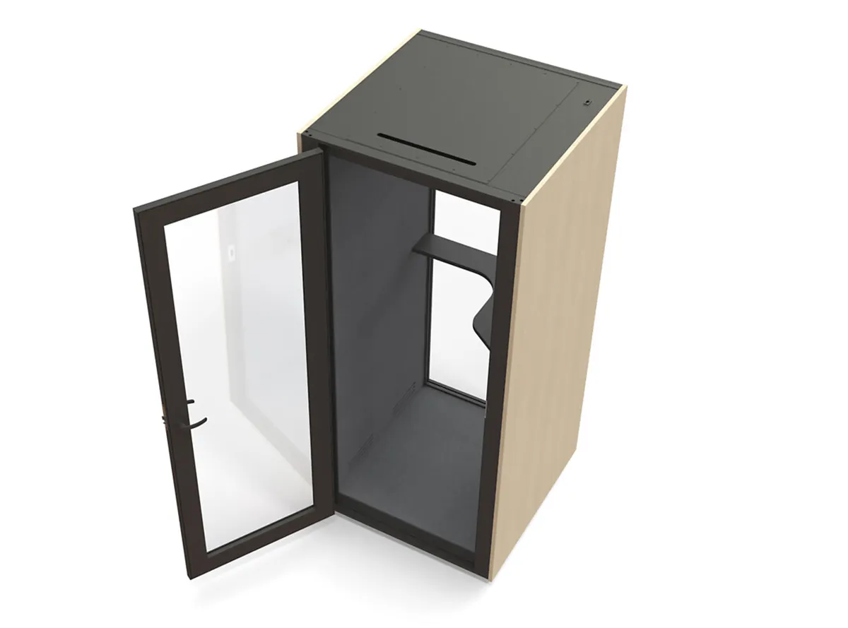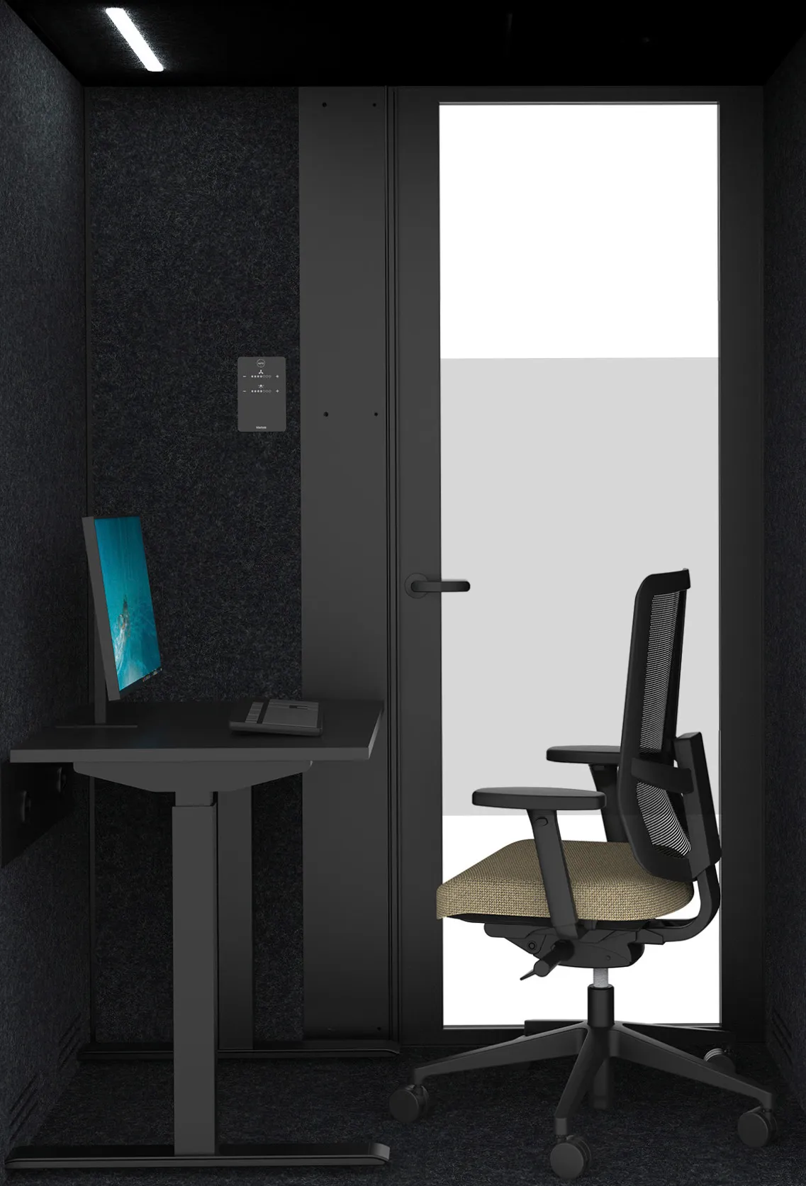 The Sono phone booth is a soundproof and highly space-efficient solution for calls and video conferencing. In addition to the table and castors Sono’s standard equipment includes e.g. motion-controlled lighting and ventilation.