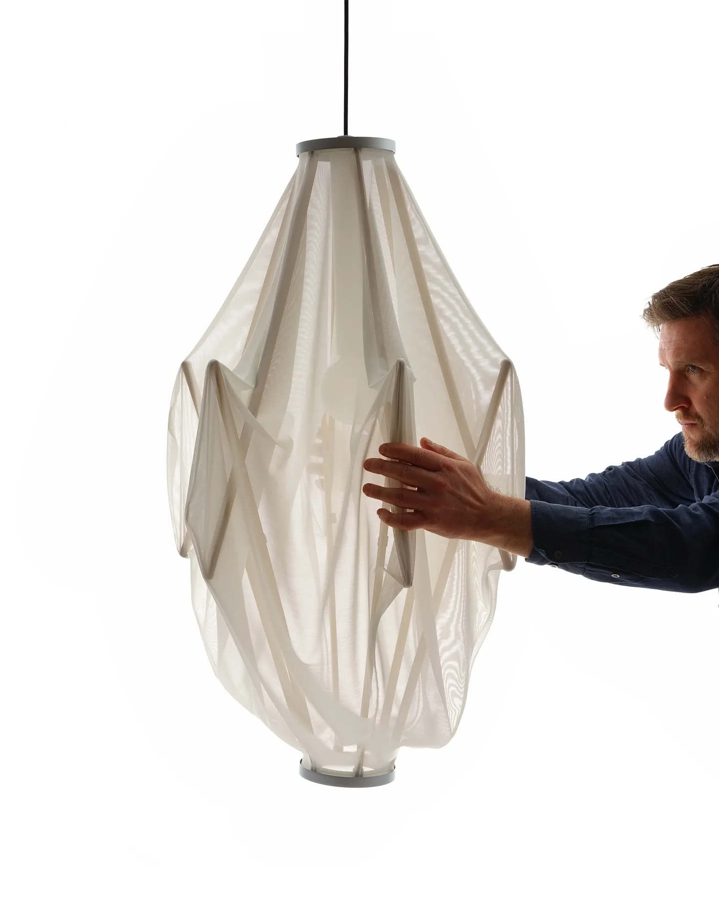 A key challenge of large volume lamps is their packaging size contributing to an increased carbon footprint due to inefficiency in transport space and excess materials. With Sorpresa, rather than opting for a disassembled flat-pack lamp, we’ve developed a pre-assembled lamp with an innovative timber mechanism that enables it to expand automatically upon release from its packaging.