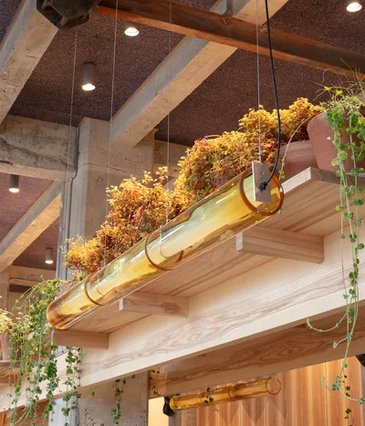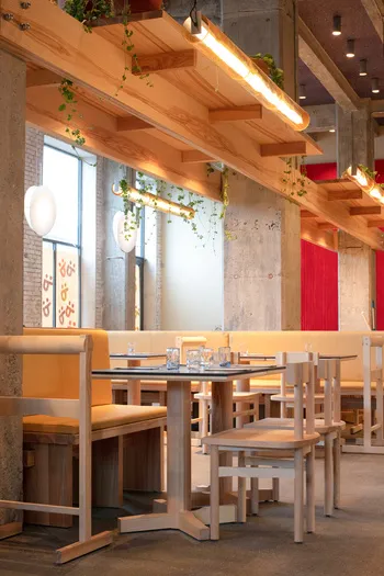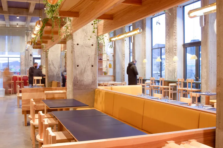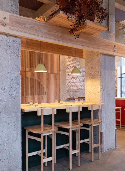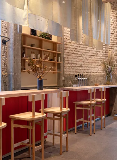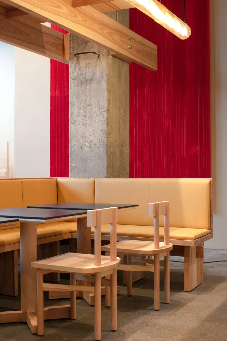 Izakaya, the informal drinking establishments of Japan, inspired the design concept of the restaurant, while the name itself – derived from Latin word ‘populus’ meaning ‘community of people’ – reflects the spirit and heart of POPL. Born out of Covid-19 and Noma’s summer pop-up, the restaurant aims to broaden the culinary horizons of the humble burger. This is subtly echoed in its design, which marries Japanese influences with Scandinavian aesthetics.