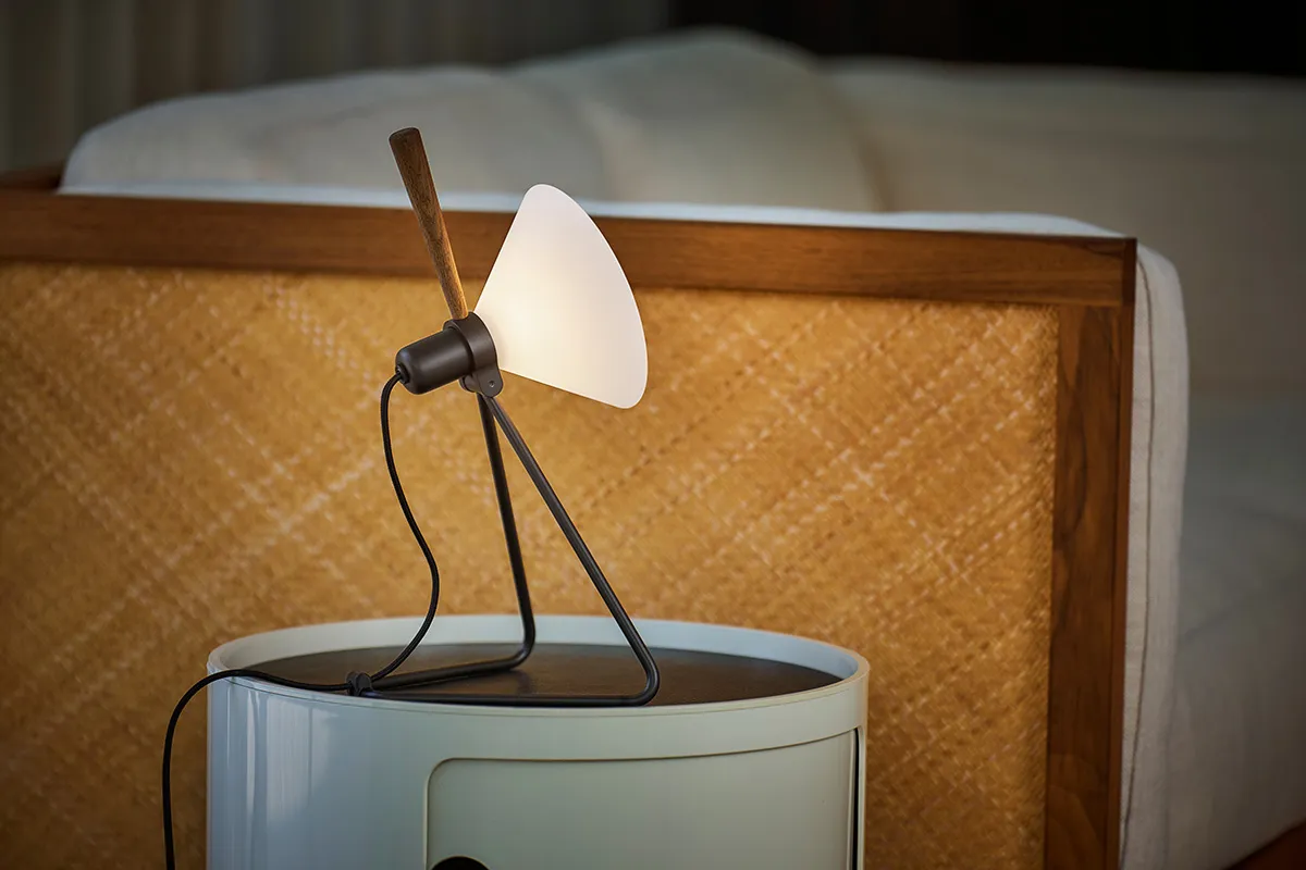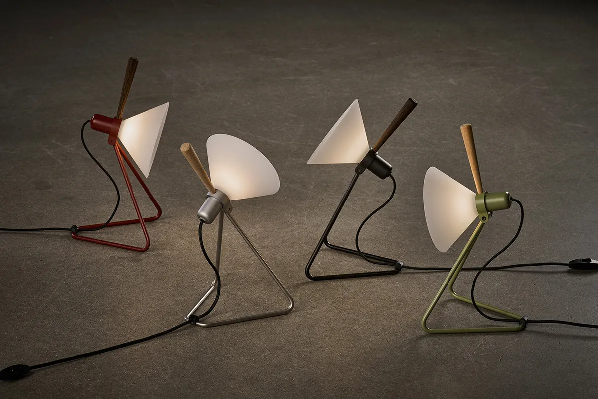 “The idea was to create a lamp that can be carried around the home. The soft wooden handle underscores this function. It is a result of my personal experiences, where I have travelled extensively and lived in several countries and cities, which has made me only bring the most essential things with me. But the primary inspiration is my love for espresso machines (handle) and bicycle components (clamp + metal wire) in the design, emphasising the lamp’s agile and portable nature,” says Pascal Hien about the inspiration.