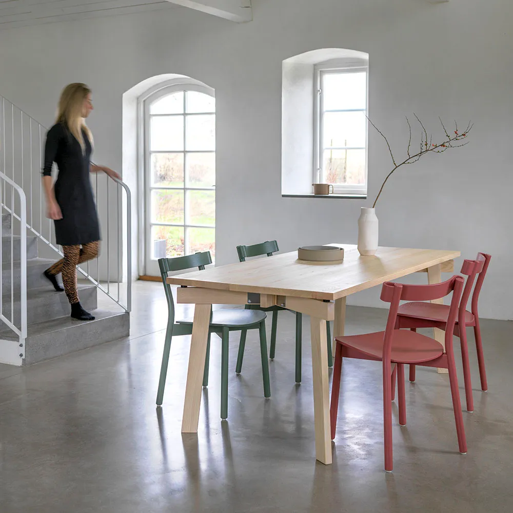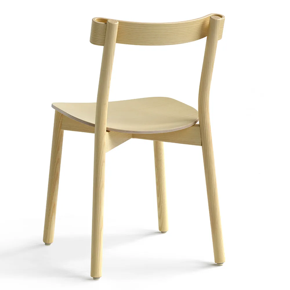 Marcel Sigel offer a unique chair all in wood thanks to an iconic twist to the backrest. Although the ash veneered birch wood is bent to the extremes at the ends, the wood seems to flow effortlessly like a strip of cloth. Or rather a piece of cloth frozen in time!