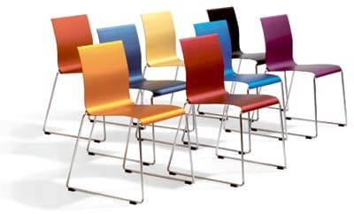 STING is comfortable to sit on, with a slight “give” in the backrest and it stacks with a fantastically tightness, builds only 13mm per chair in all variations.