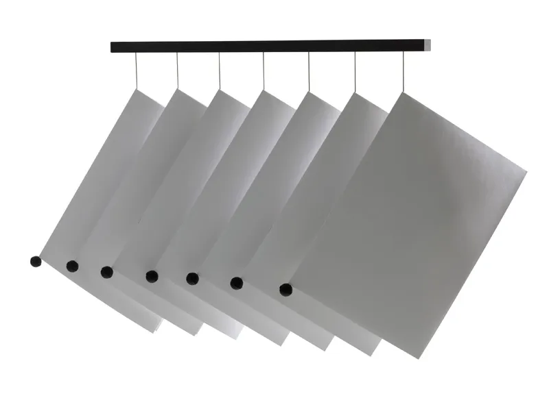 – magic newspaper hanger. Produced in solid wood, with sound-absorbing rubber rings and polyesther ribbons. Available in white or black colour. For wall assembly.