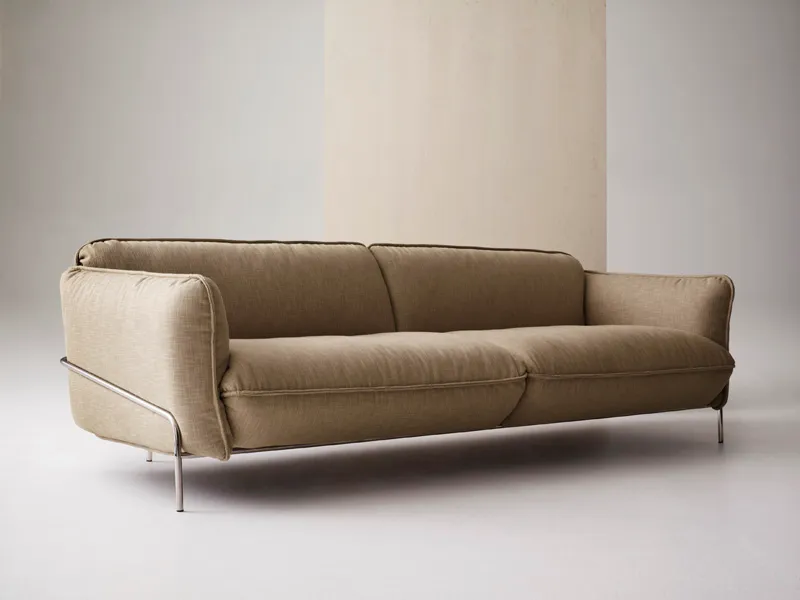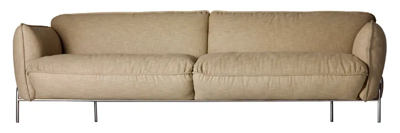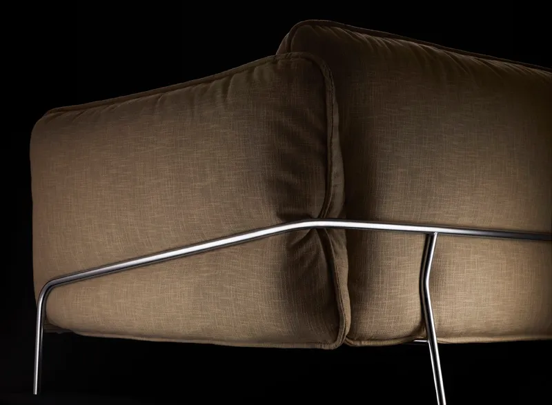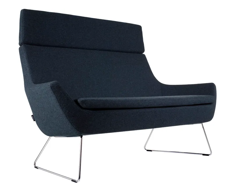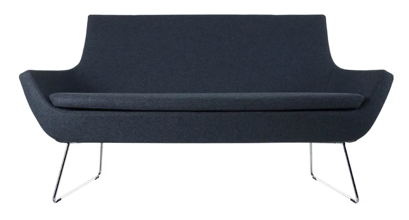 – sofa with low back or with high back. Upholstery in fabric or leather. Steel sled base in chrome finish. A sofa adding to the Happy family of easy chairs, chairs and bar stools.