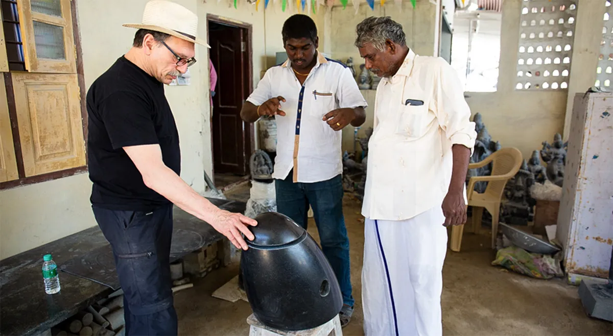 Design is not just a discipline of solving functional problems with help of advanced technology. It is first of all a language – a means of communication between manufacturer and user, between designer and craftsman, and uniquely with the Tranquebar Edition, between people, their stories and cultures merging contemporary views with traditional crafts. It is in the dialogue. Boris Berlin travelled to Tamil Nadu in South India to research, evolve and set in motion the Tranquebar edition.