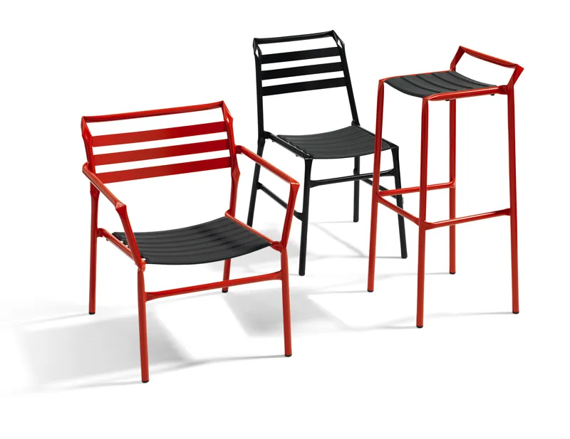 Straw is a stackable chair constructed entirely of steel. What makes Straw unique is the way in which the tubular steel has been deformed. Instead of forming the frame in gentle bends, osko+deichmann have folded the steel tubes. Folds and kinks are the most obvious way to deform a tube, but the contrast with the otherwise rounded shape of the tube produces a result that seems almost to have been fashioned by hand. Bent tubular steel has stood as a symbol for modernity in furnishings ever since the innovative designs of Mart Stam and Marcel Breuer in the 1920s. Advances in manufacturing techniques revolutionized the furniture industry and heralded a new era for furniture. With Straw, osko+deichmann pay homage to classic tubular steel furniture, while simultaneously challenging convention both visually and physically, and introducing a striking new expression to the canon of the design.