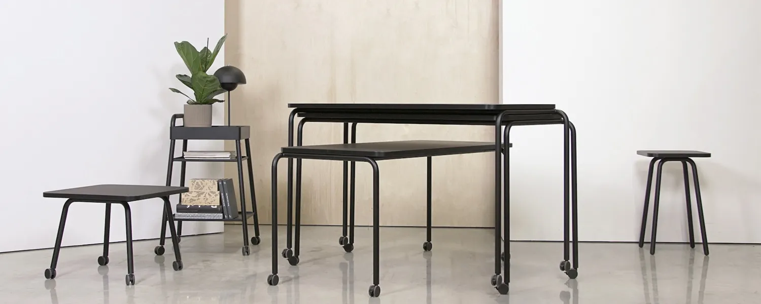 Initially launched in 2020, the series has now been extended with work tables, a serving trolley and side tables.
