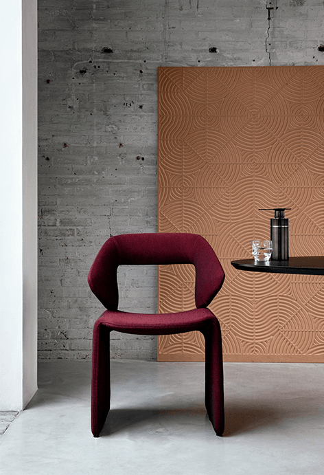 The distinctive silhouette of the Suit, with its elegant open back and flowing lines, effortlessly matches the contours of the body. It’s a surprisingly comfortable and inviting chair, whose soft upholstery embraces the user like a chic tailor-made suit. This unique chair will add an exclusive elegance and individuality to any space.