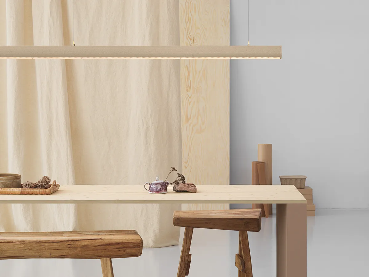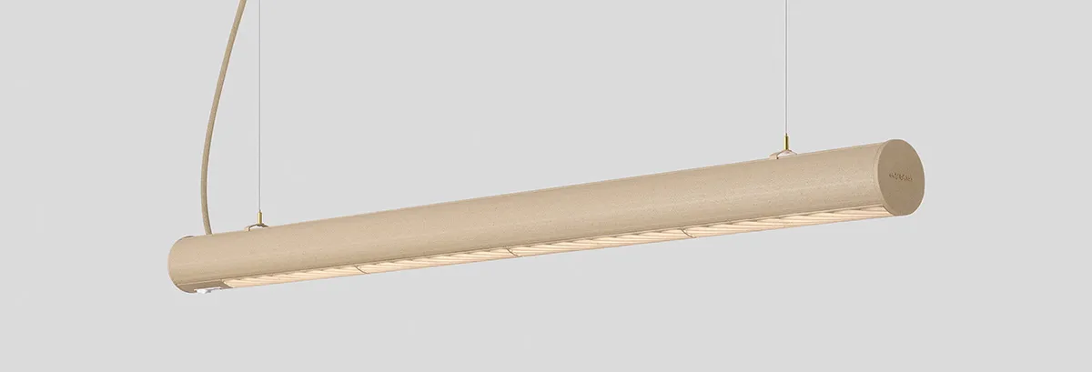 Sustainable Superdupertube lamp by Snøhetta for Ateljé Lyktan featuring innovative hemp material construction