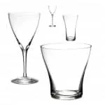 Ingegerd Råman (1943) har ritat en glasservis i fyra delar – champagneglas, vinglas och två selterglas – samtliga munblåsta vid Skrufs glasbruk.