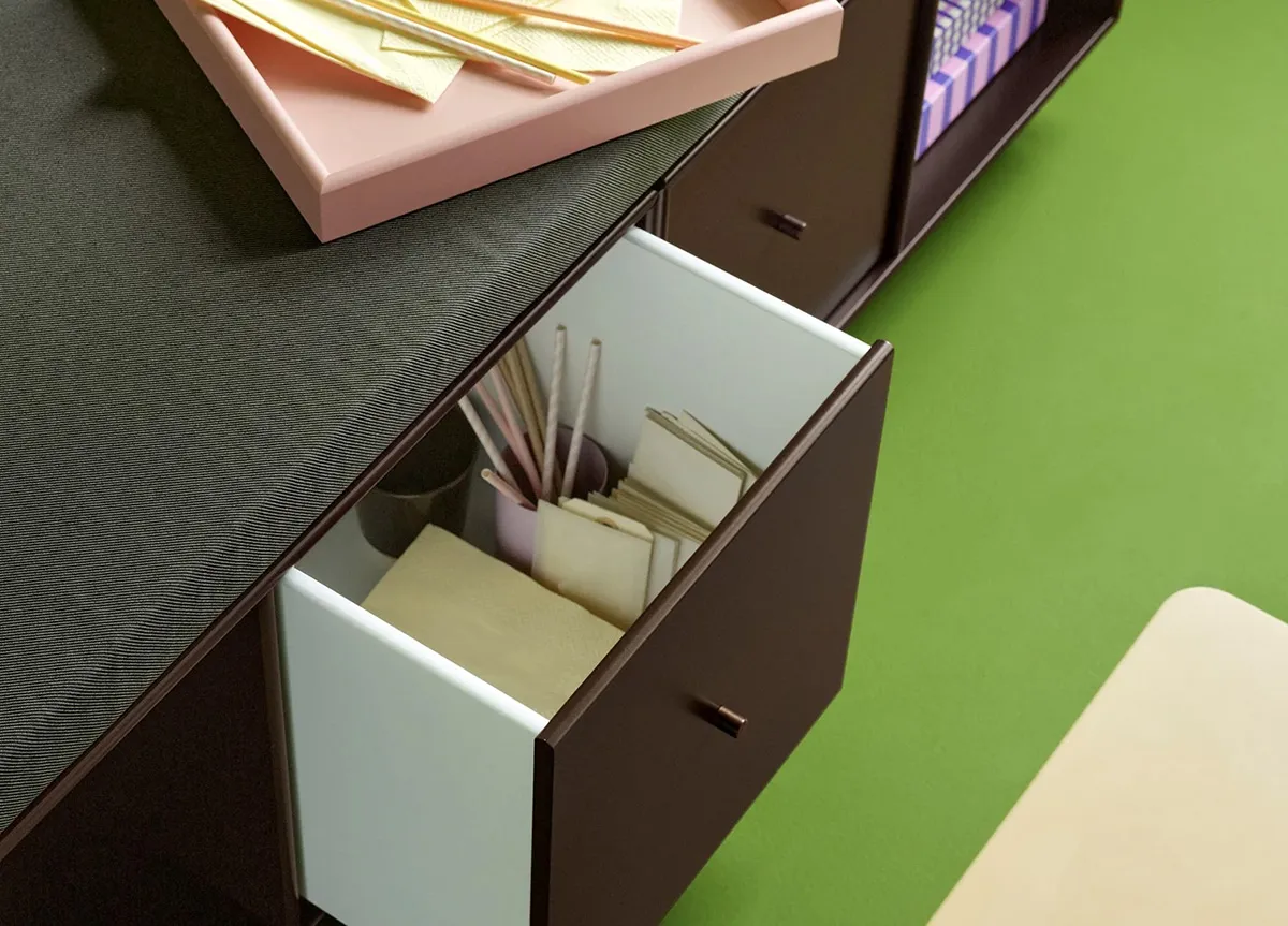 Designed for total flexibility, the series includes various storage options such as drawers, cabinets, and shelves in different sizes, enabling the design of a modern seating system that seamlessly adapts to any setting. Whether placed in an entryway, living room, or bedroom, these multifunctional pieces offer the perfect solution for tidying up clutter while providing comfortable seating for you and your guests.