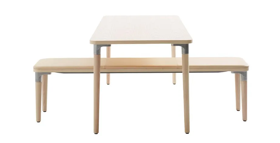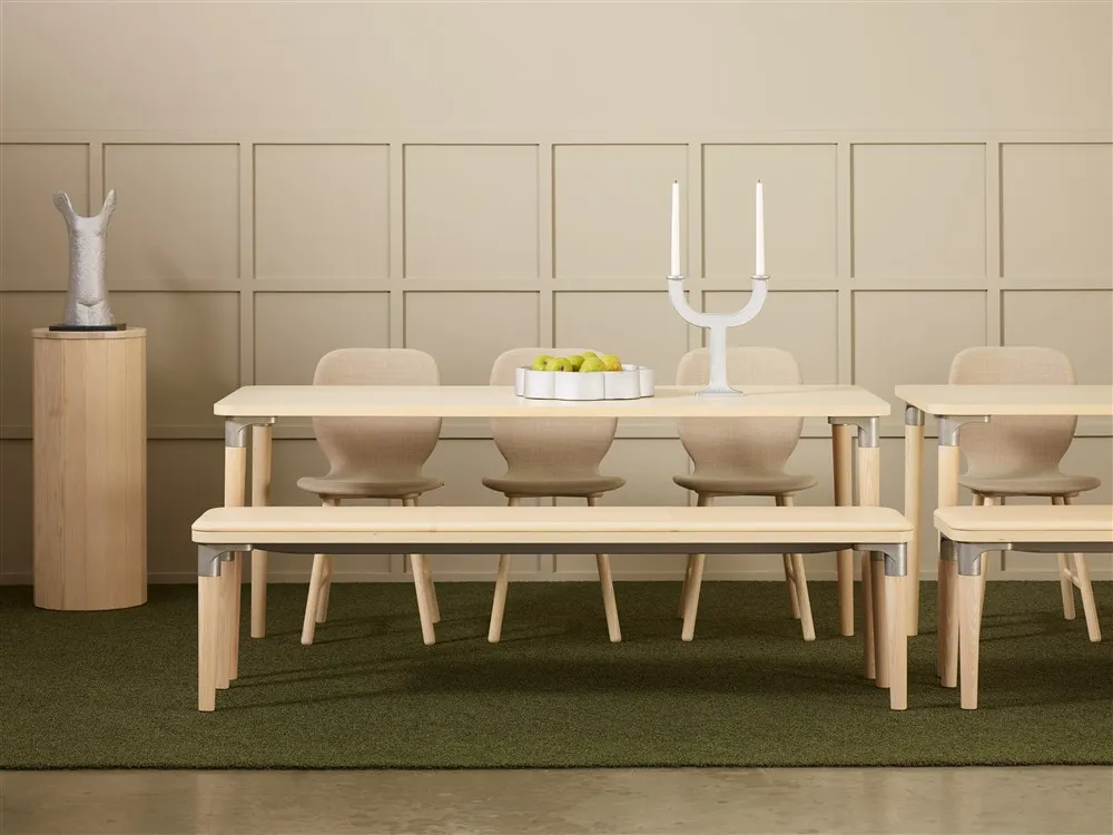 Tailor bench, inspired by the history and proud industrial heritage of the Huskvarna iron foundry, is well suited to the circular economy thinking of the future. The Tailor series also includes tables in a wide choice of different sizes and finishes, all with leg mounts in the same design as those on Tailor bench. The bench is manufactured in oak, birch or ash, with standard stains on ash, or white glaze on oak and ash.