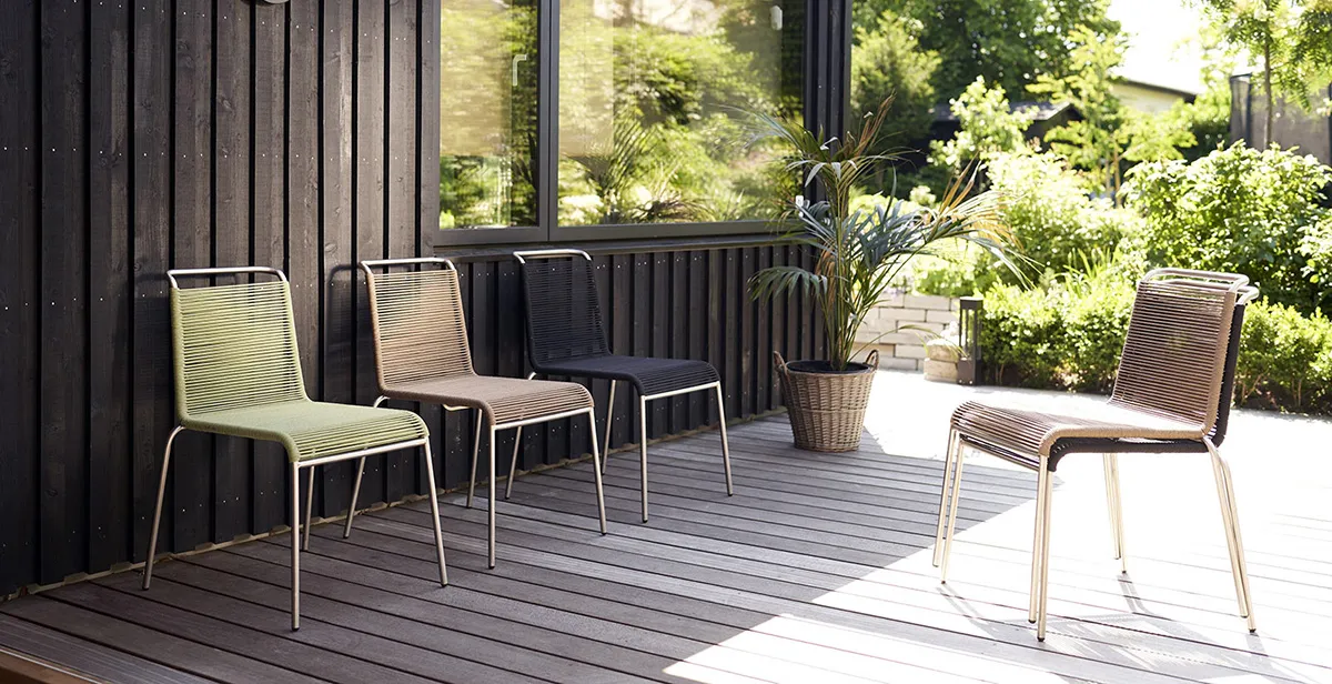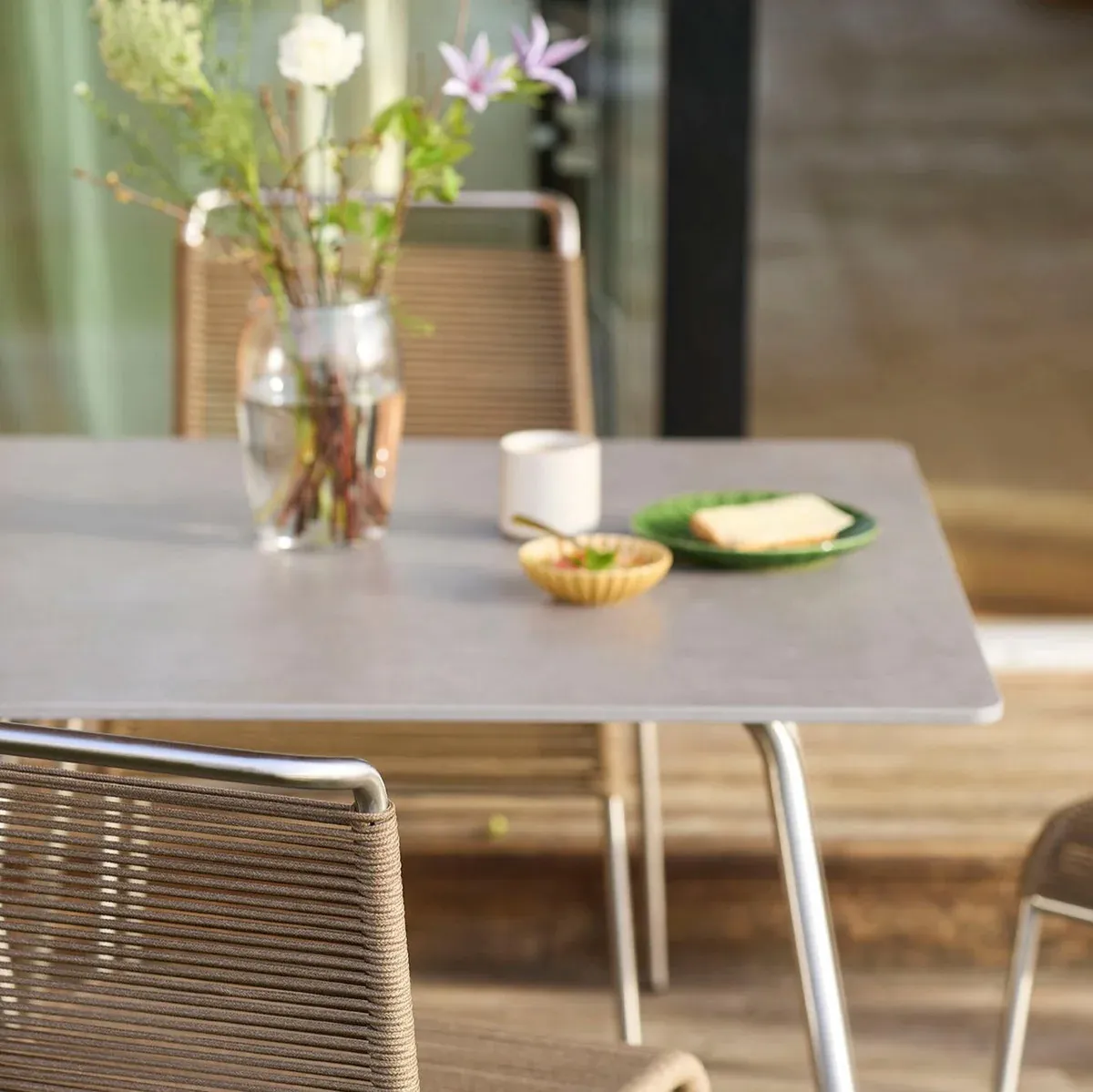 The aesthetic and the practical converge in the Teglgaard chair, designed expressly to withstand Denmark’s often whimsical weather. Built of materials chosen for their outstanding strength, durability, and ability to shed water – brushed stainless steel alloy, polyester cord – it is sturdy, stackable, and dries quickly after a summer shower. A single shake or a quick wipe with a cloth, and the chair is ready for use again. And all without scrimping on seating comfort. When summer comes to Denmark, Teglgaard’s modern design fits in everywhere, whether garden or courtyard, laneway or street.
